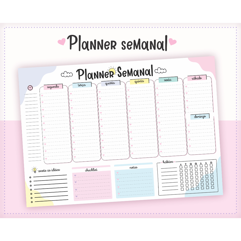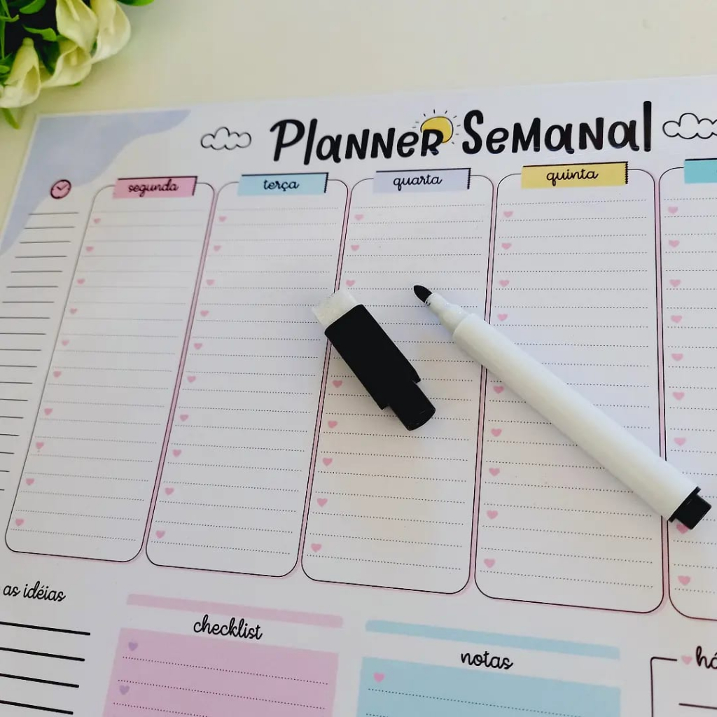 Quadro Lousa Planner semanal 2026 / planer MAGNÉTICO / Acompanha Caneta Com Imã e apagador