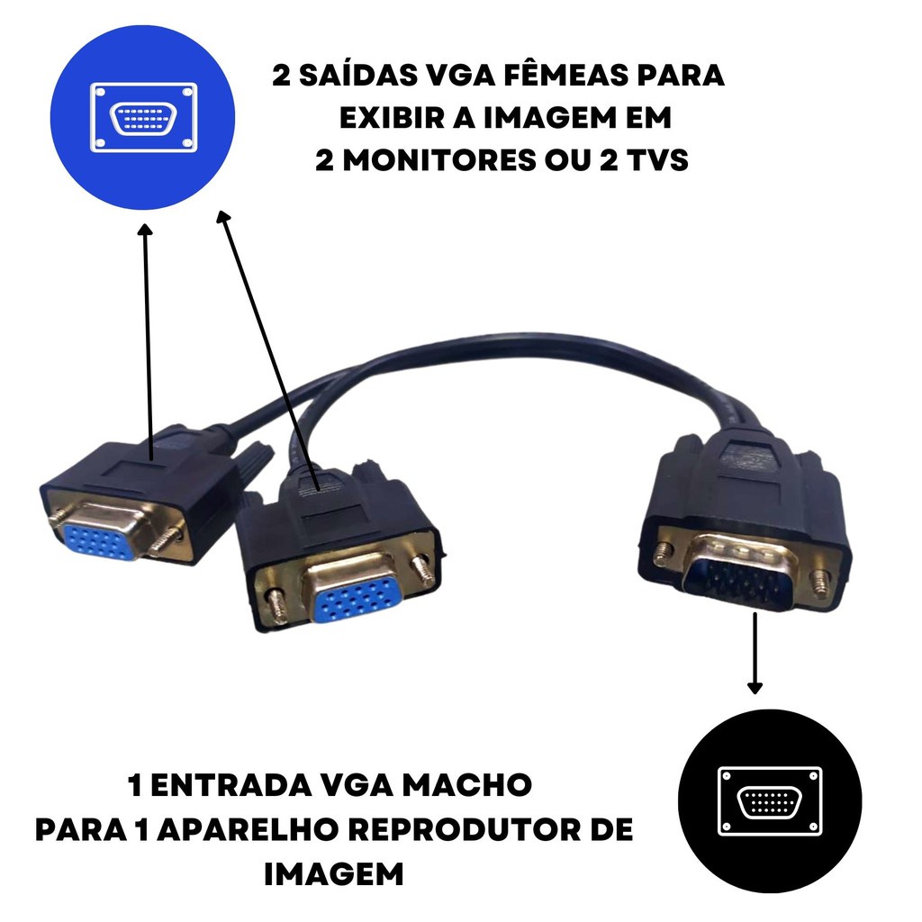 Atacado 5 Cabo Monitor Pc Em Y Splitter Multiplicador Vga 1 Macho X 2 Femeas Vga
