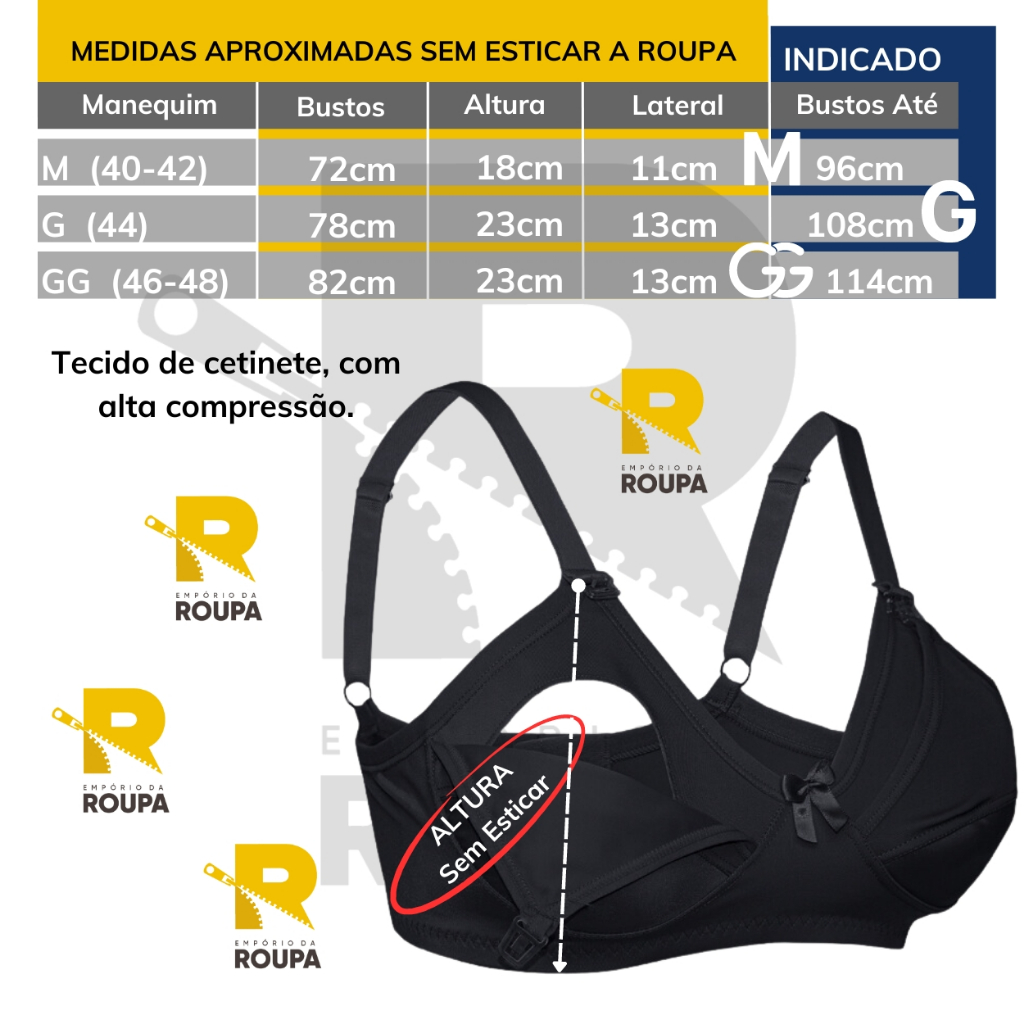 Sutia Amamentação Gestante Grávida Sem Bojo Alta Compressão Reforçado De Microfibra Alça Grossa Empório Da Roupa