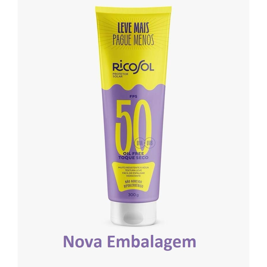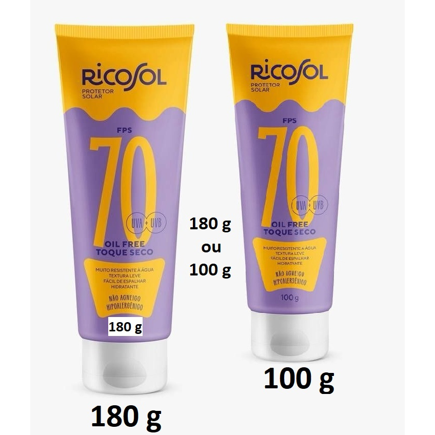 Ricosol Protetor Solar Toque Seco Oil-free FPS 70 Vegano 100g ou 180g
