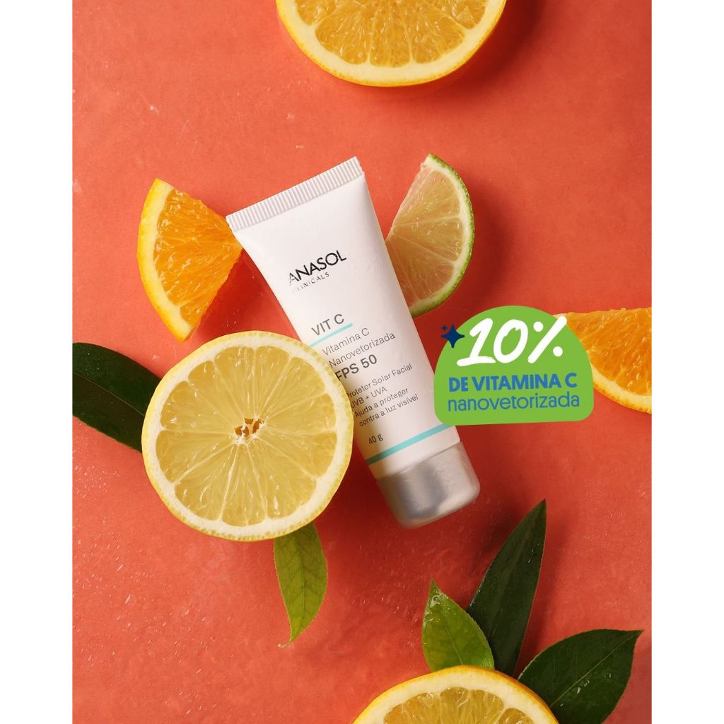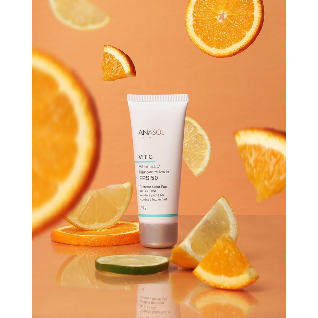 Protetor Solar Facial Anasol Clinicals FPS 50 Vegano com Vitamina C 40g