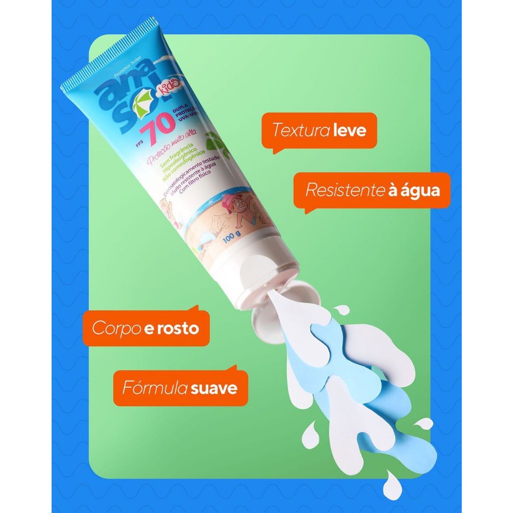 Protetor Solar Infantil FPS 70 Corpo e Rosto 100g - Anasol