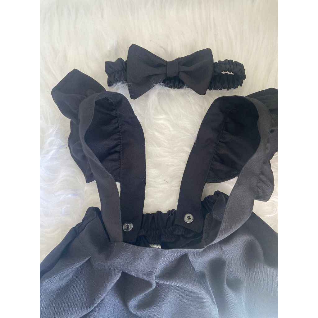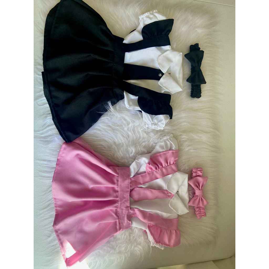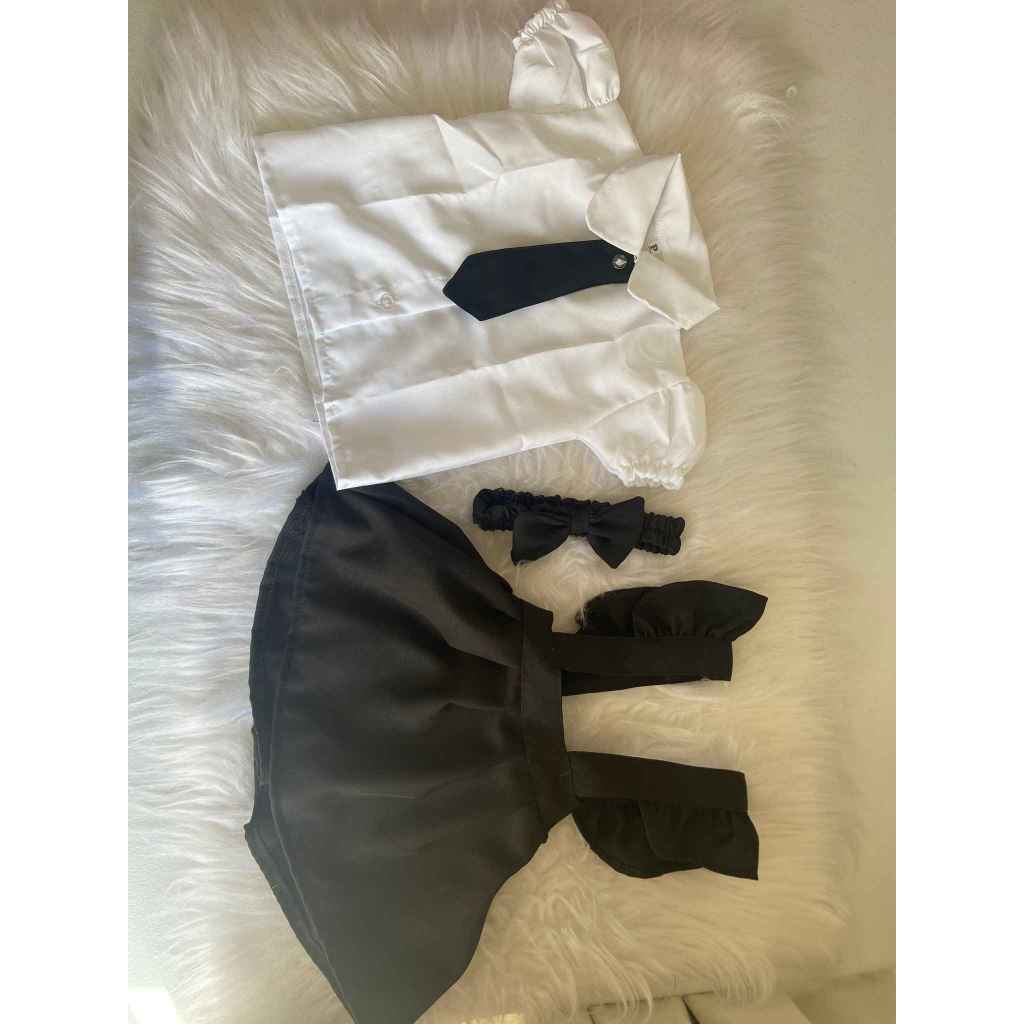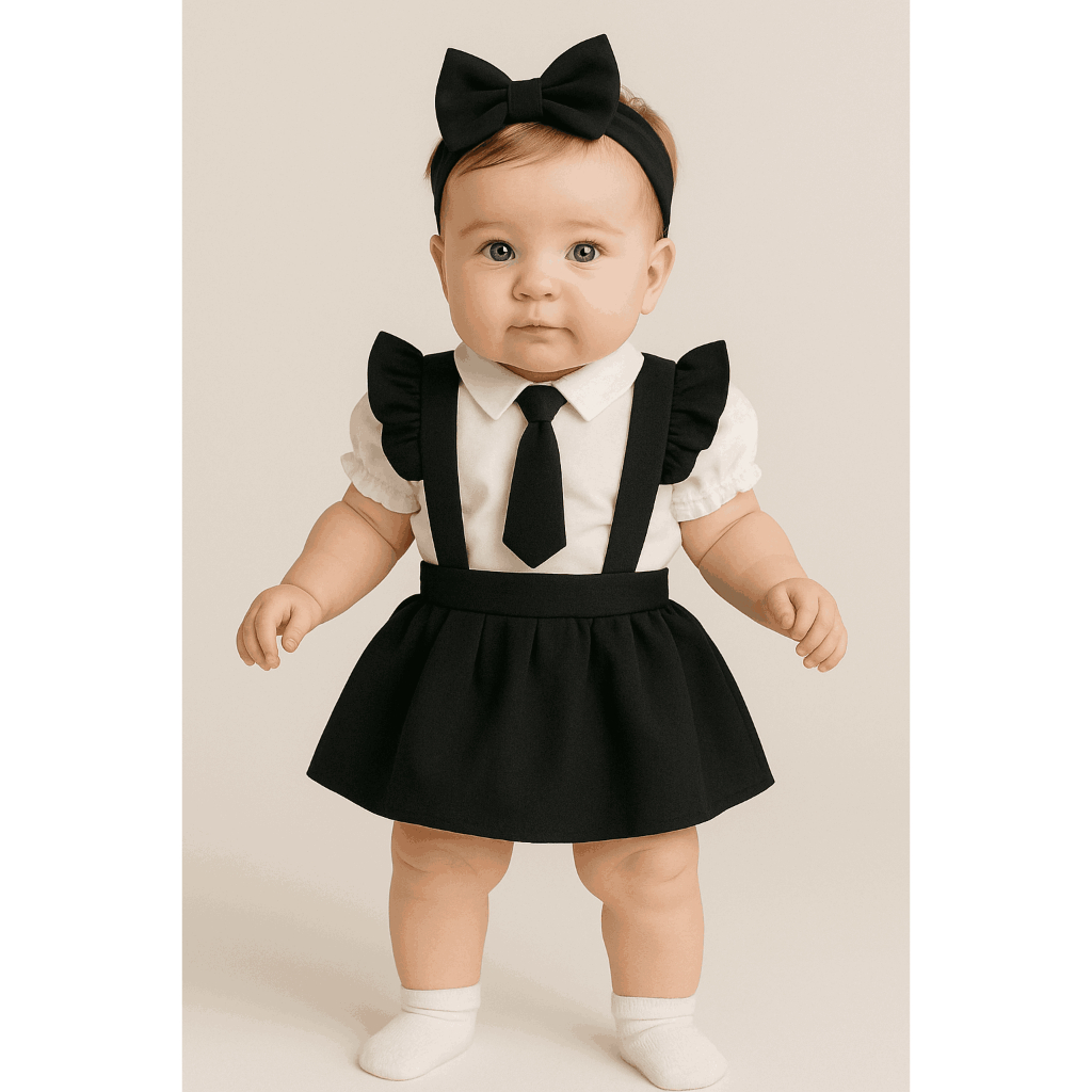 Conjunto Social infantil Feminino Camisa Gravata Saia Menina Bebe Suspensório 4 Peças
