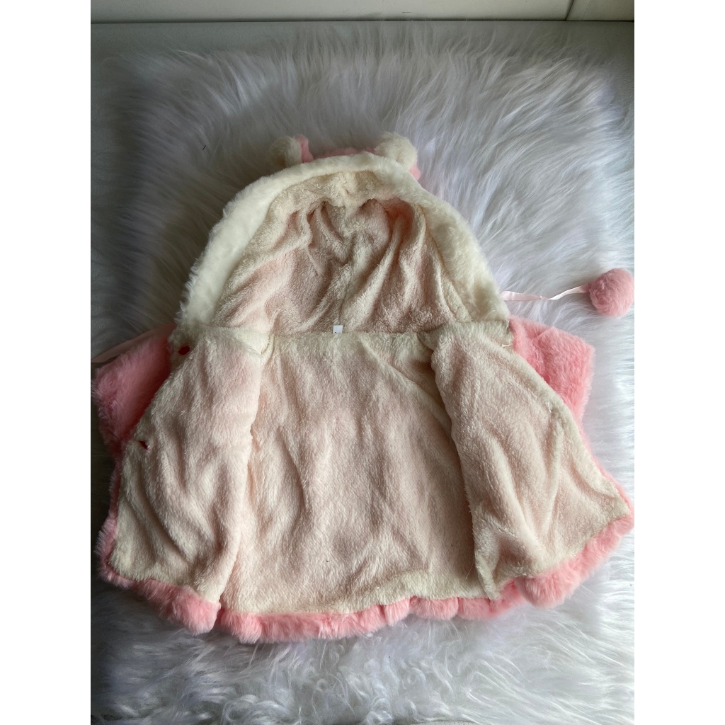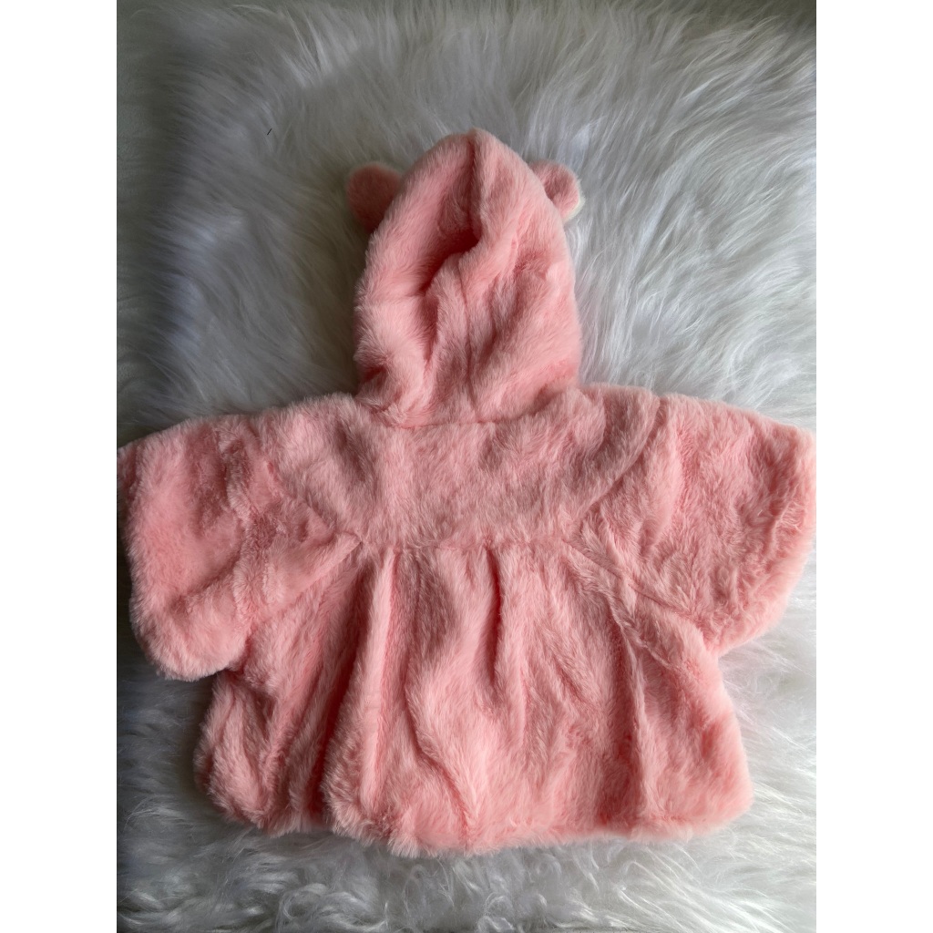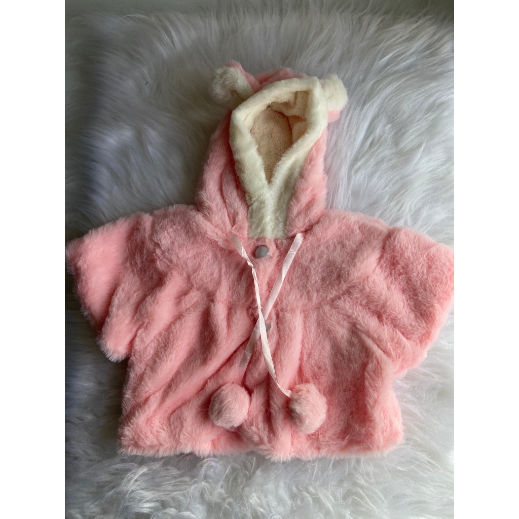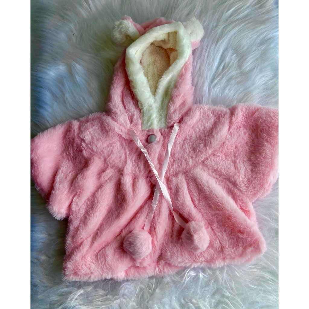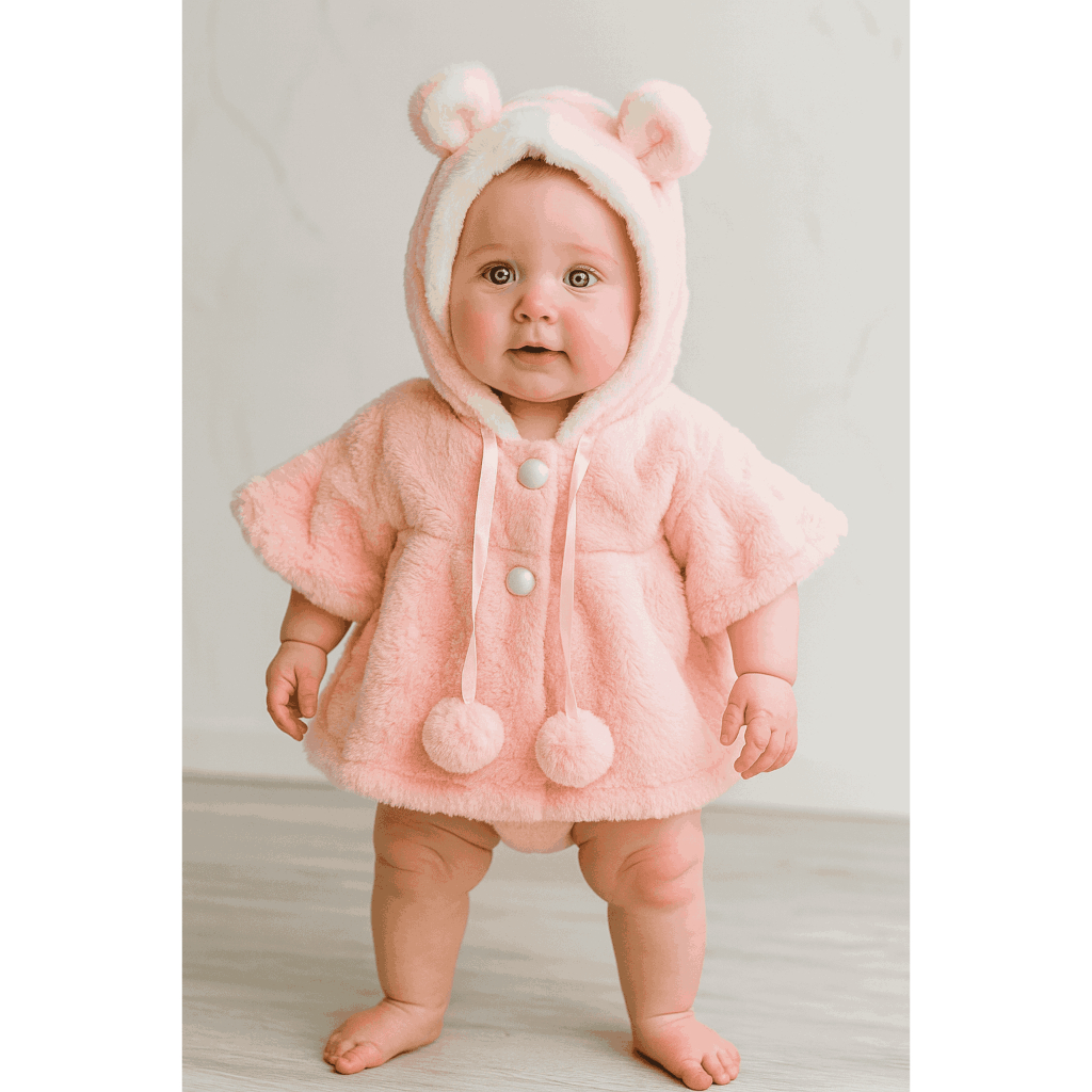 Bolero poncho blusa Infantil de Bebe Peluciada com Capuz de Ursinho – Rosa Bebê