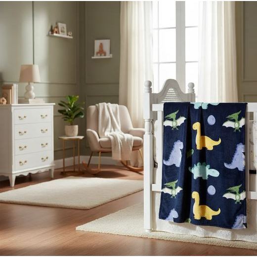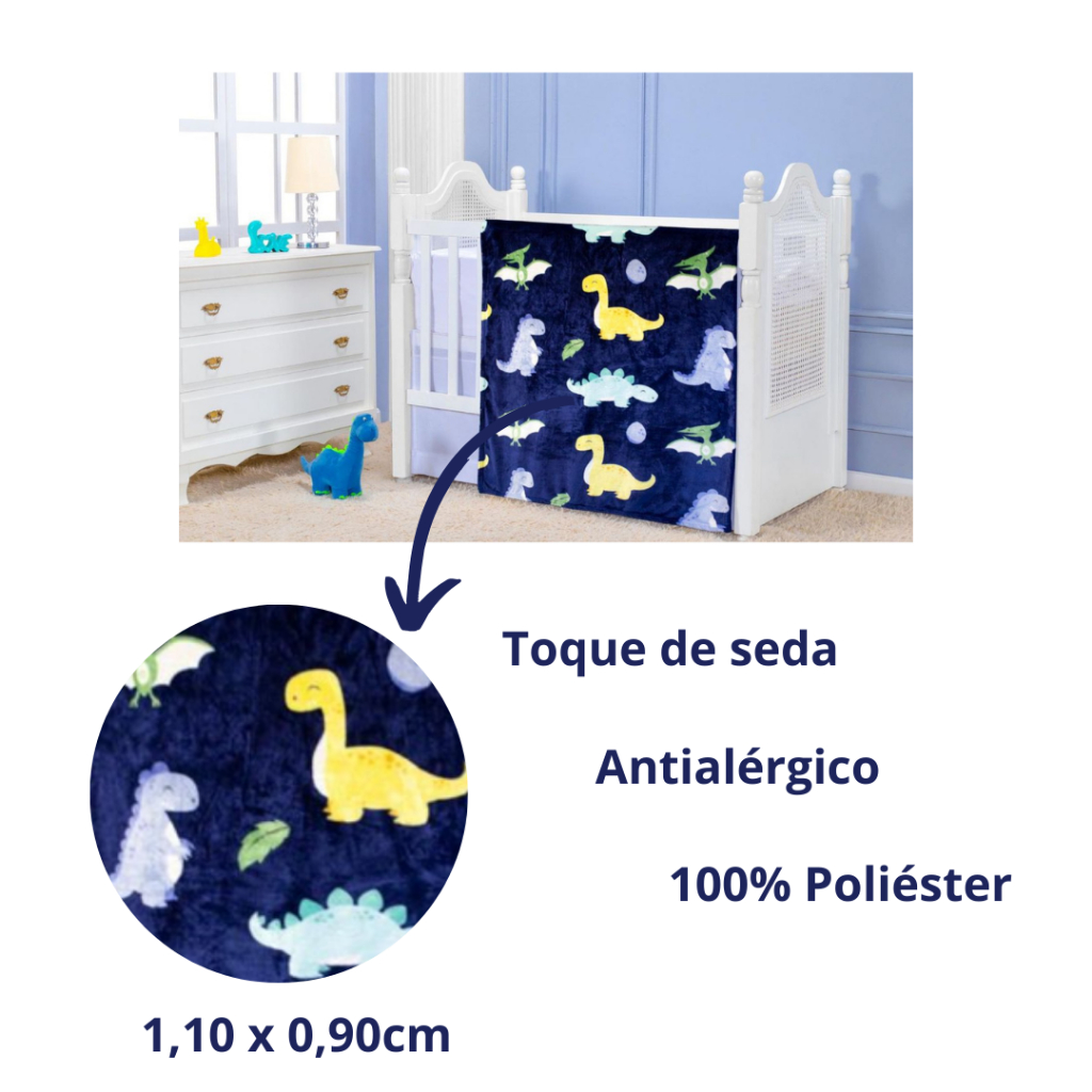 Cobertor Manta Bebe Estampado Neutro Não Alérgico Etruria Dinossauro Azul