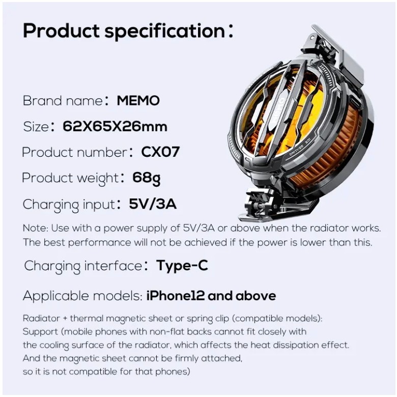 MEMO CX08 Pro CX08 CX07 DLA6 DL22 DL20 Resfriamento Rápido Magnético/Clip Semicondutor Telefone Móvel Geladeira Radiador