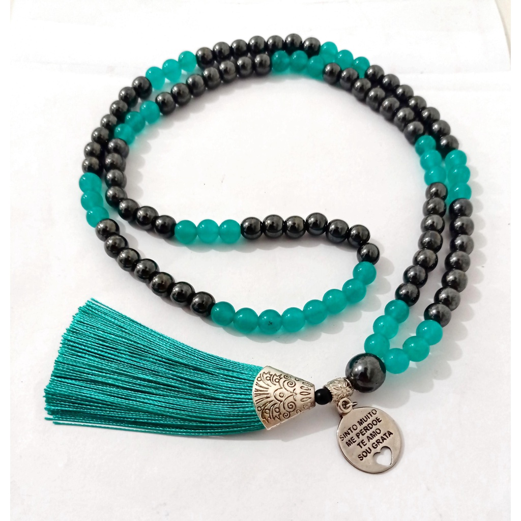 Japamala 108 Contas Hematita Jade Turquesa 8 mm Pedras Naturais Ho'oponopono