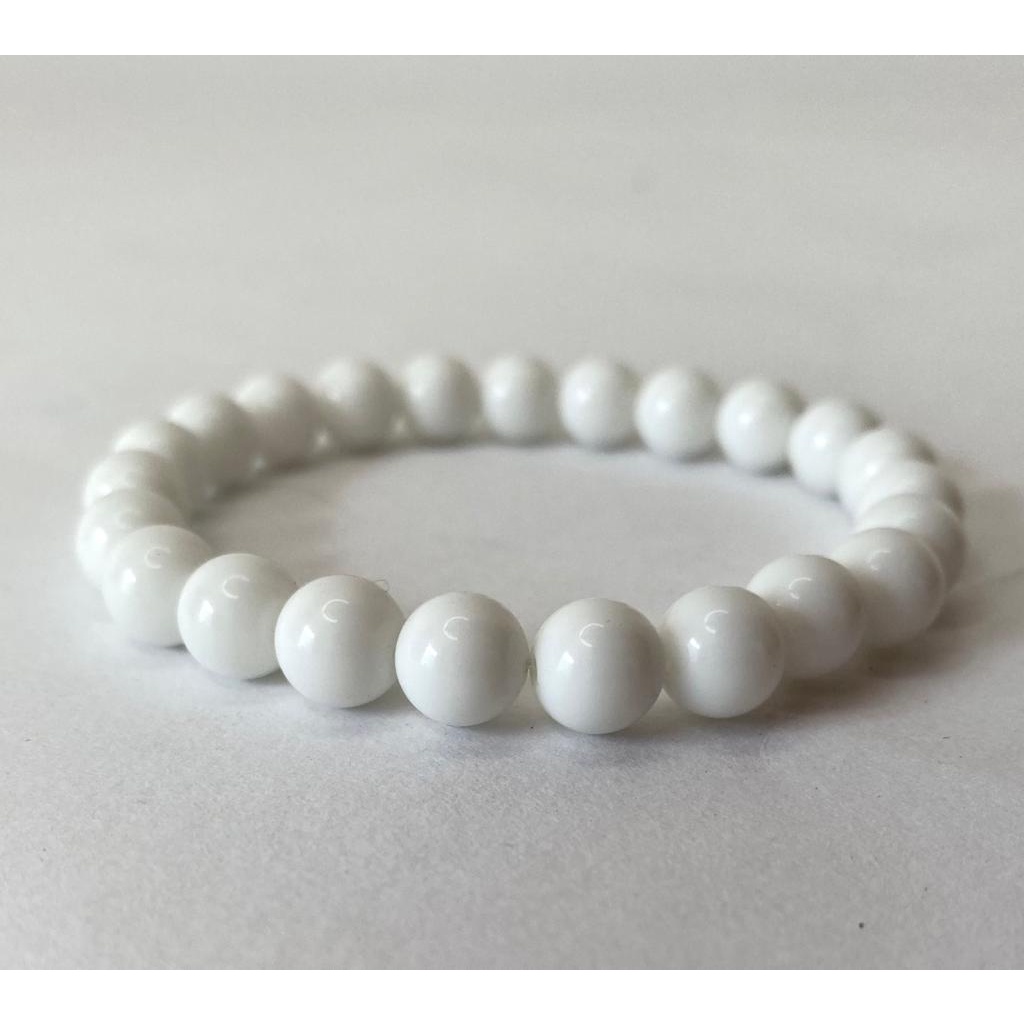 Pulseira Ônix Branca 8 mm Pedra Natural Feminina Masculina