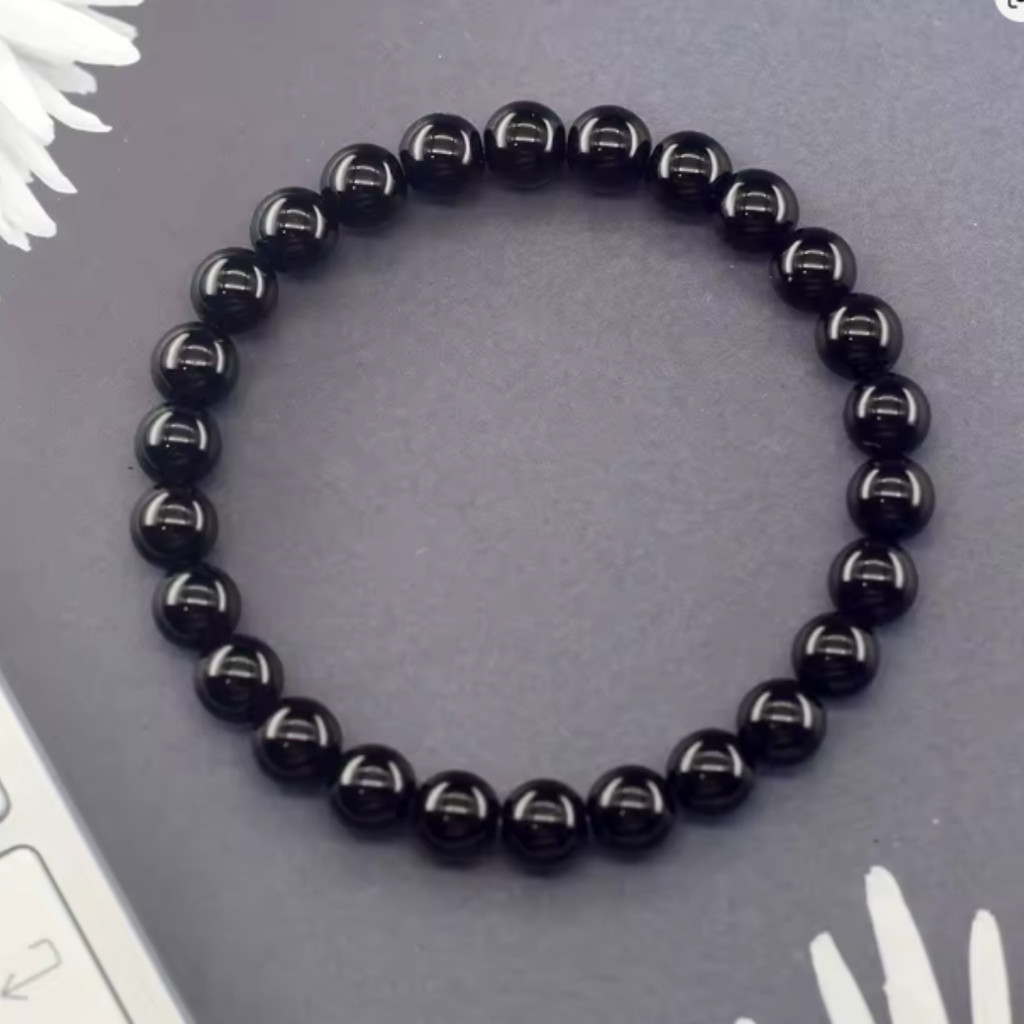 Pulseira Ônix Preta 8mm Pedra Natural Proteção Unisex