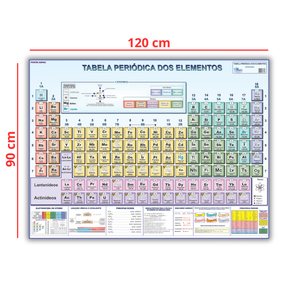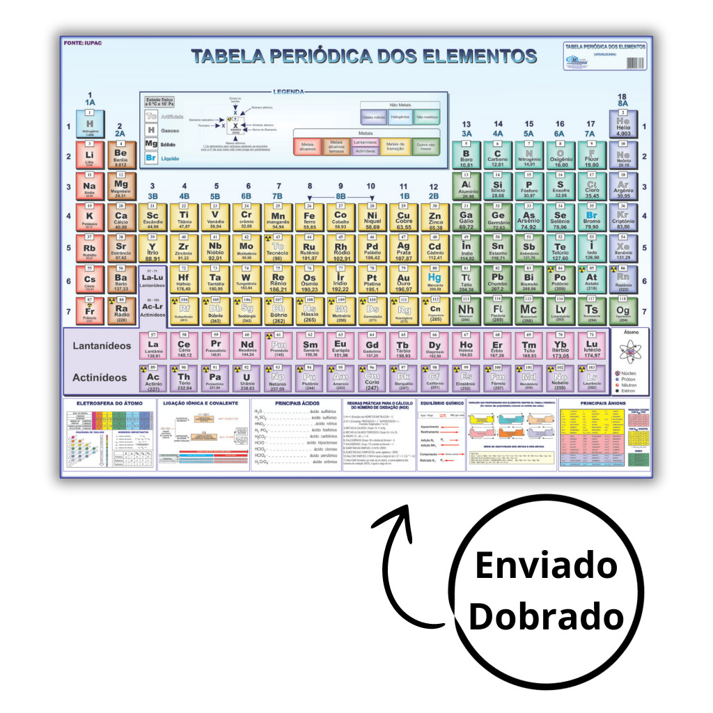 Tabela Periódica Dos Elementos Químicos - 90cm X 1,20m - Dobrada - Escolar