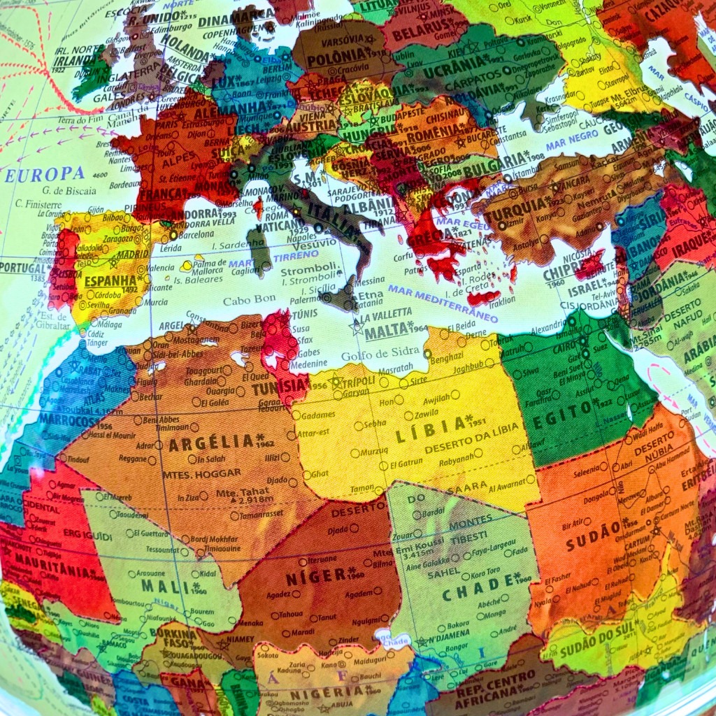 Globo Terrestre Histórico Fisico Político Ouro Velho c/ Luz Led - 30cm Diâmetro e 43cm Altura