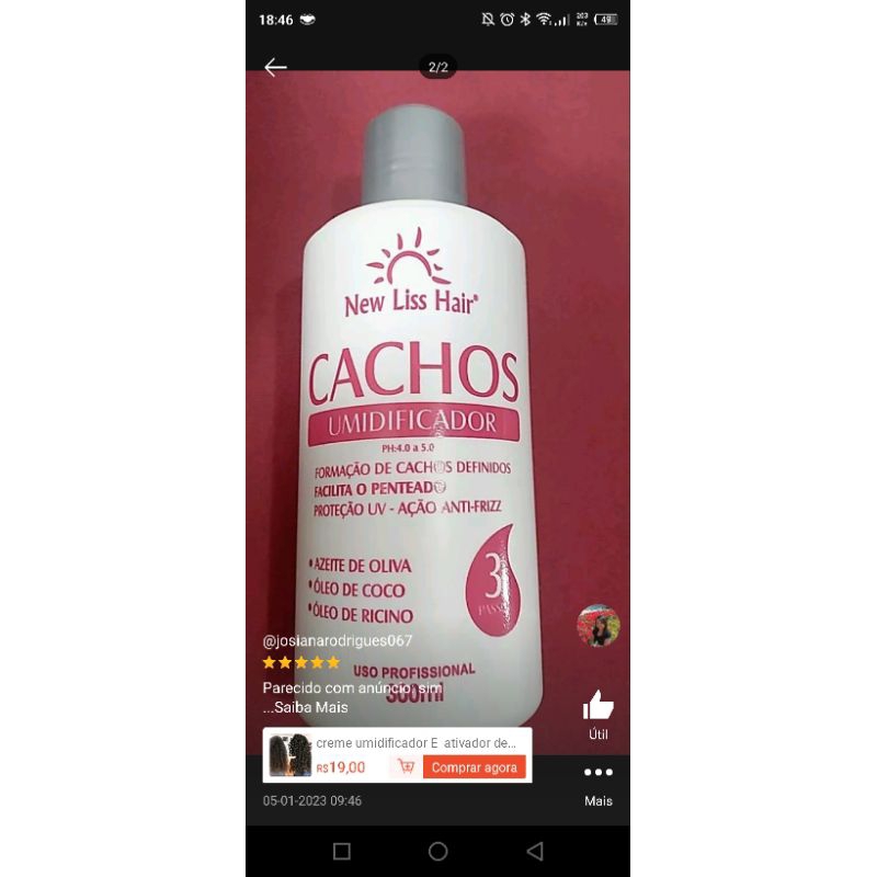 creme umidificador E ativador de cachos zero química New liss hair 300ml