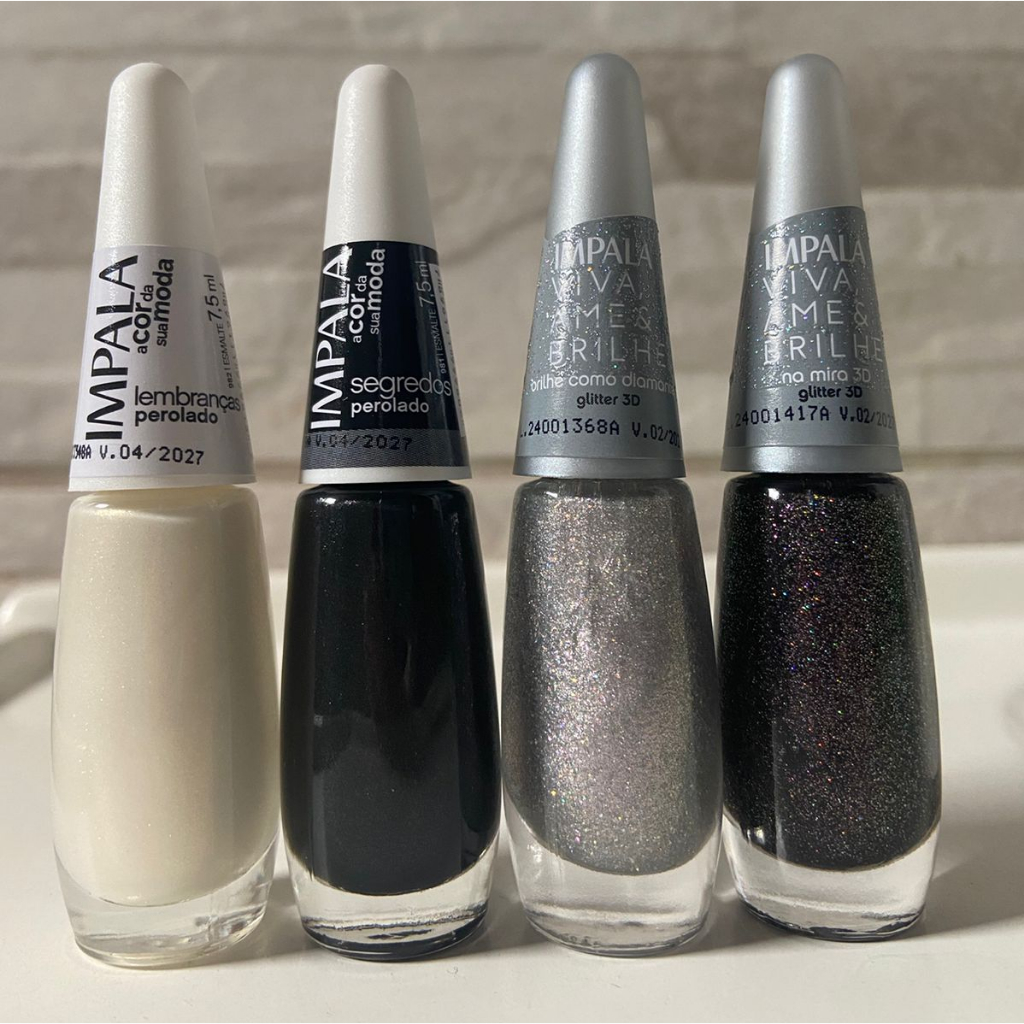 Kit Esmaltes Impala Tons de Preto e Branco com Glitter C/04