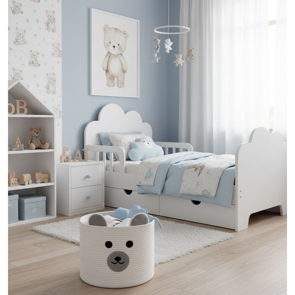 Cestinho Organizador Infantil Urso - Cesto Bebê Multiuso Tecido Corda Algodão 36cm x 30cm