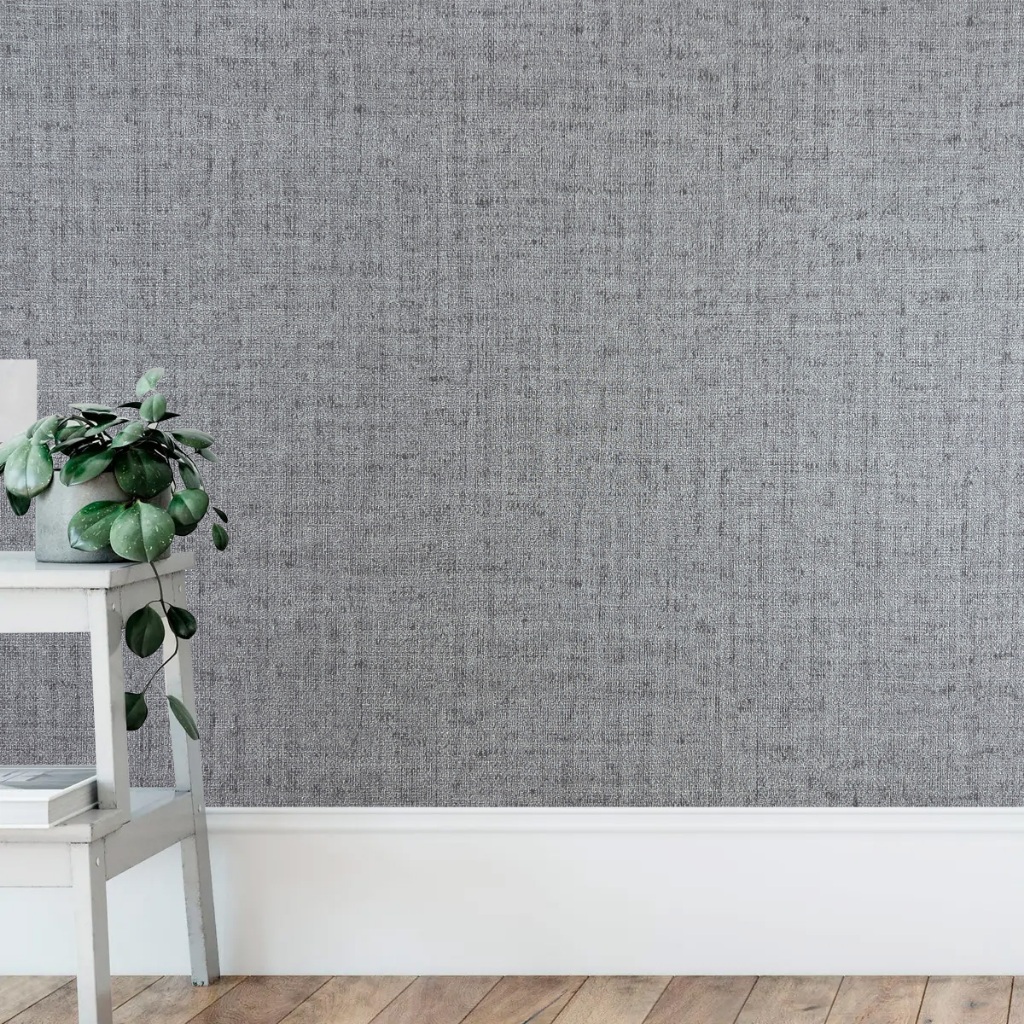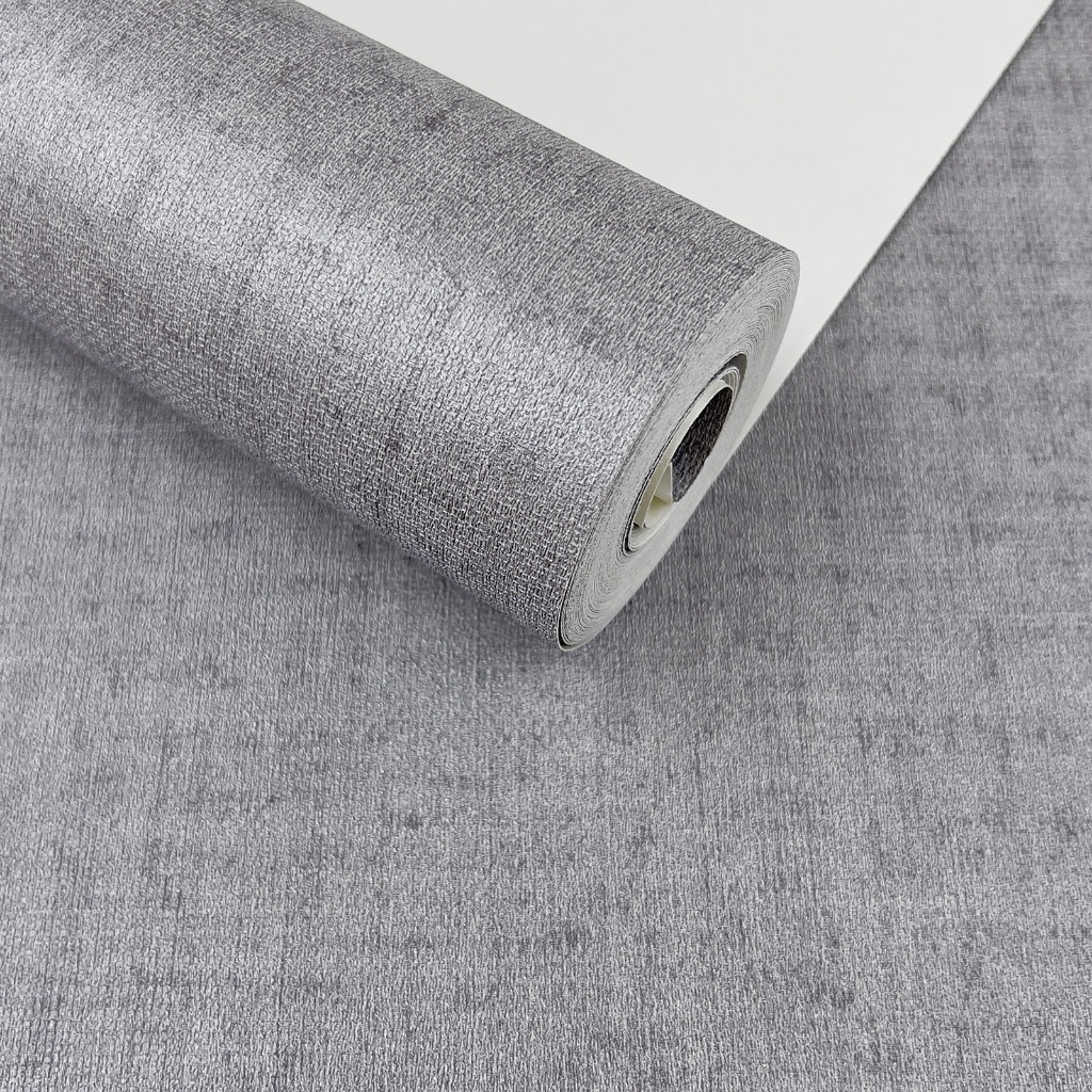 Papel de Parede Vinílico Importado Alto Relevo Linho Tom Cinza Escuro Rolo 10m x 53cm + Cola Especial Grátis - Modelo 6743-5