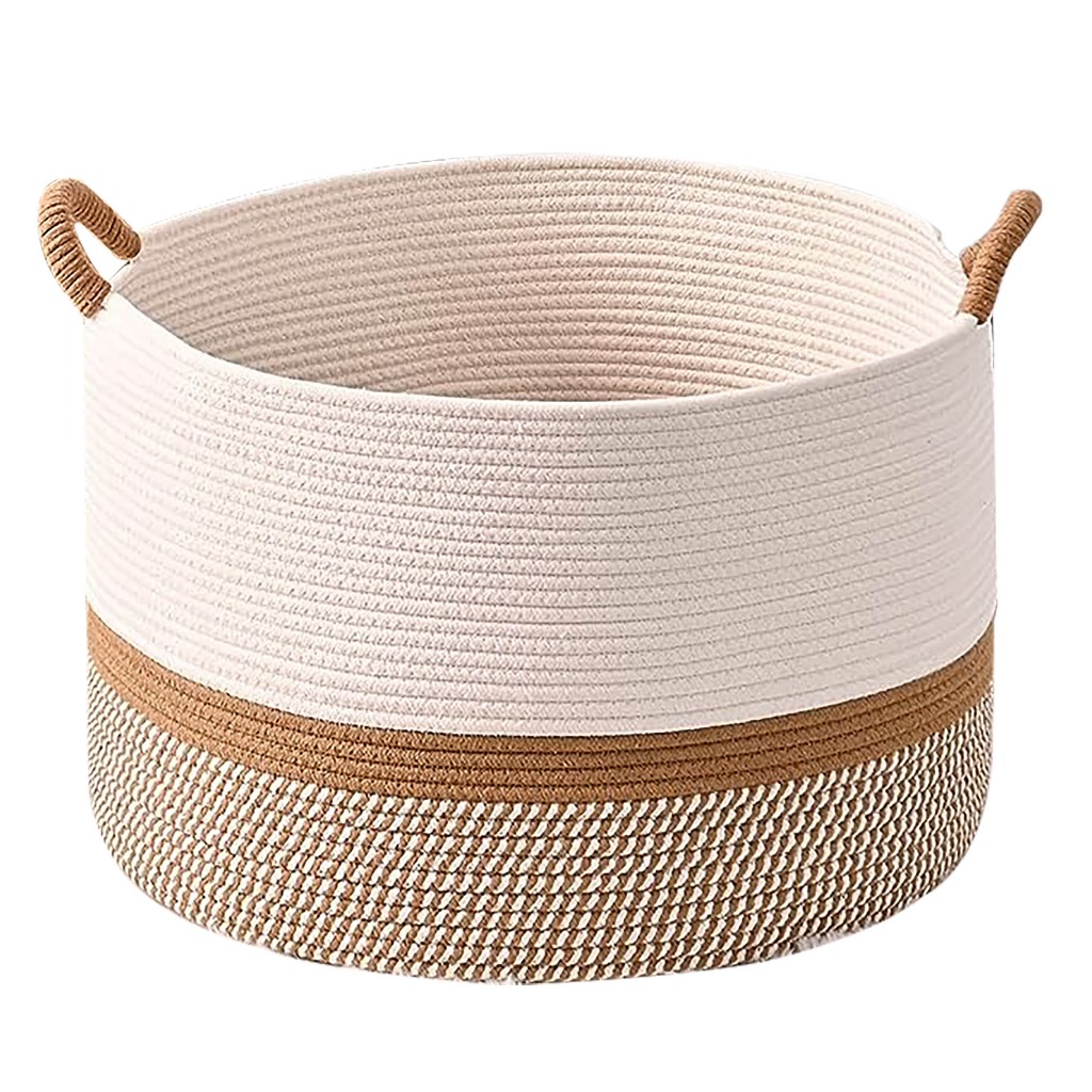 Cesto Organizador de Roupas / Brinquedos - Tamanho Grande 51cm x 33cm - 100% Corda Algodão Costura Reforçada - Marrom