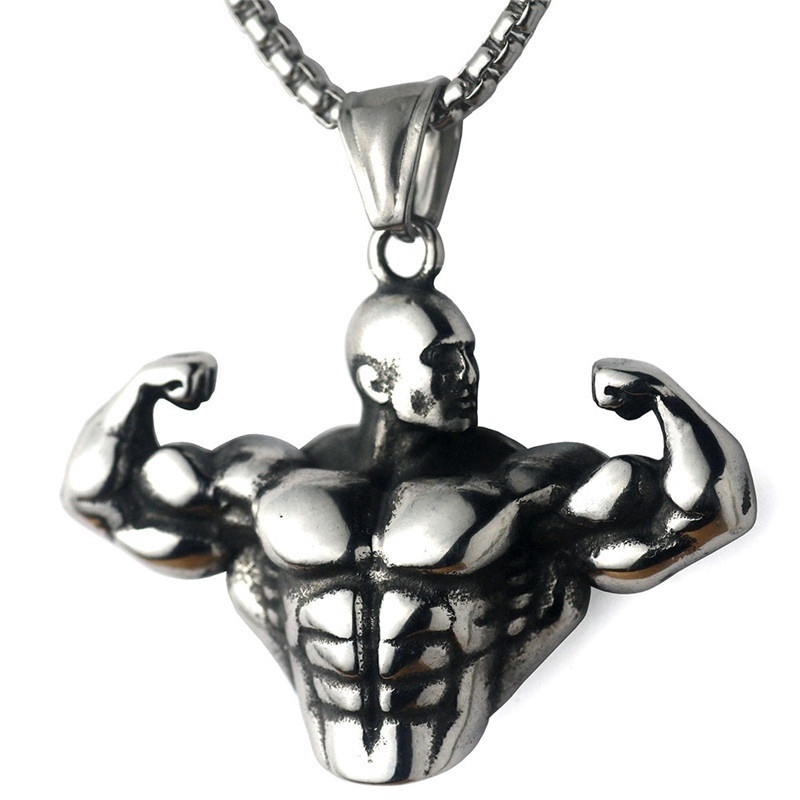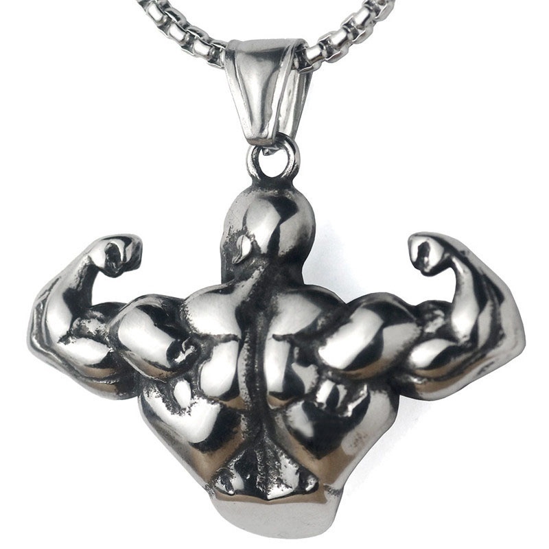 Colar Masculino Dourado Com Pingente De Estátua Muscular/Braço De Musculação