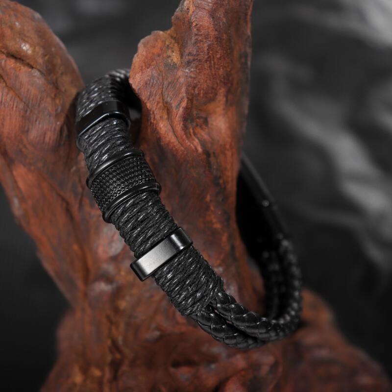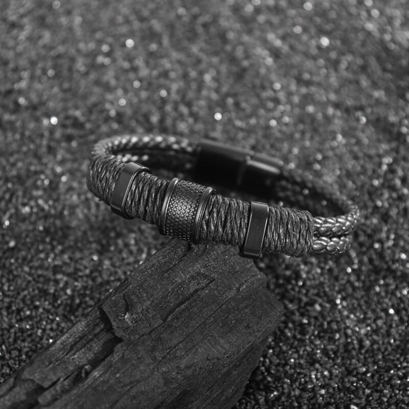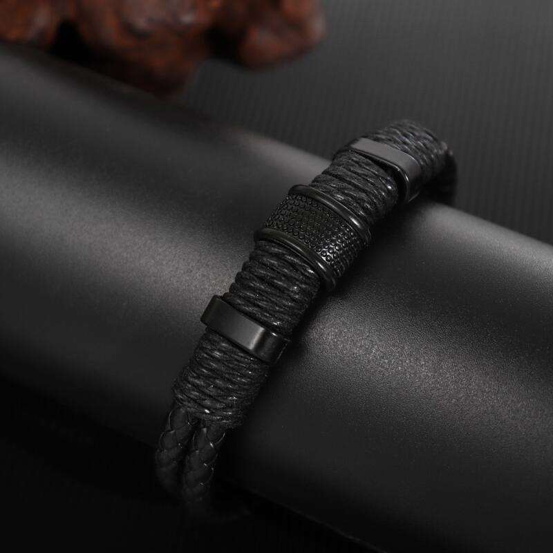 Vintage Fashion Hip Hop Punk Leather Woven Black Men's Bracelet Acessórios De Moda Festa