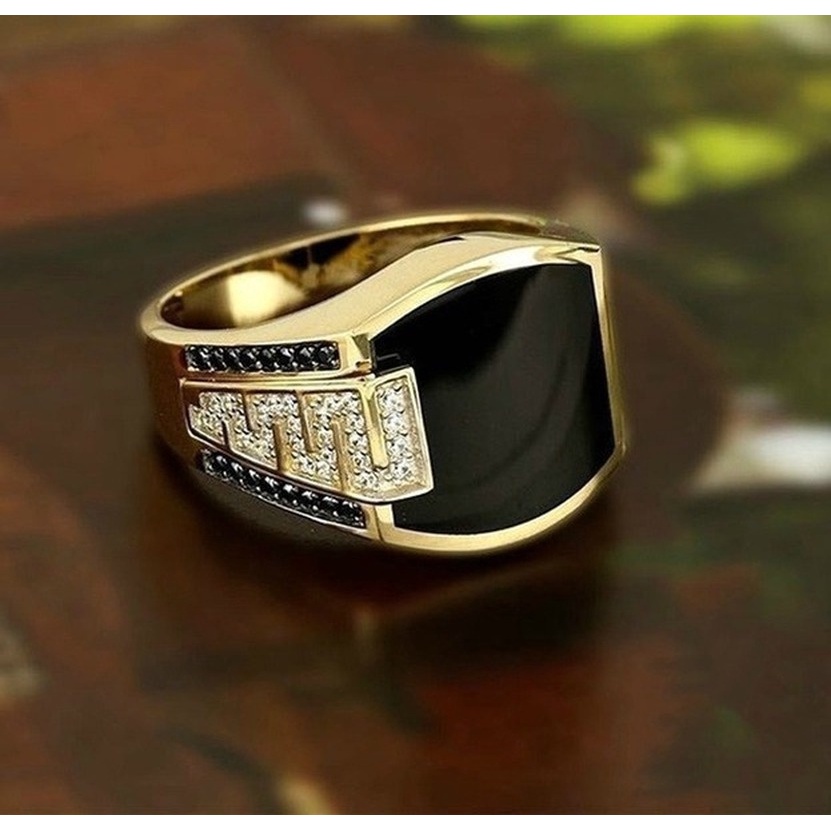 Moda Masculina Colar De Ouro 18K Conjunto De Anéis De Gema Preta Hip Hop Party Jewelry Acessórios (+ Anel)