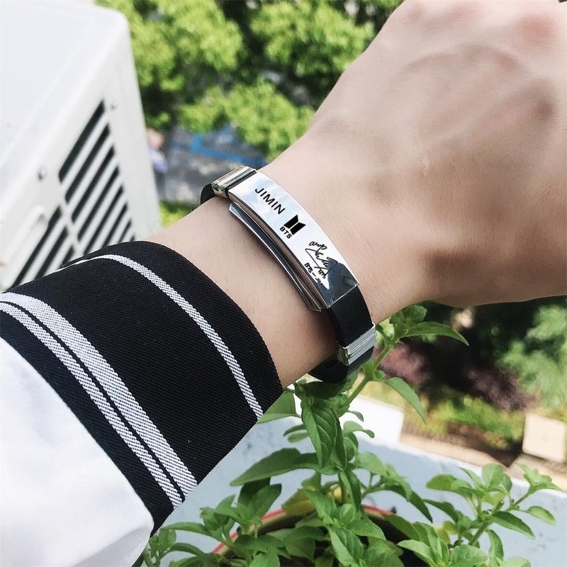 [Z H Bijuteria] Hip Hop Rock Retro Moda Masculina BTS Membro V Pulseira Titânio Silicone Festa Joias Acessórios