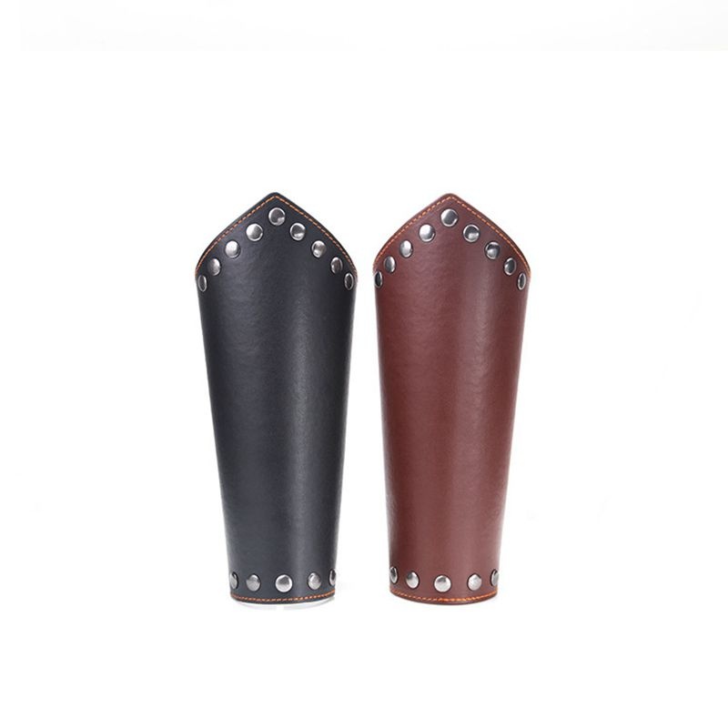 1PCS Novo Punk Men's Wide Leather Wax Rope Knight Bracers Moda Marrom/Jóias Pretas