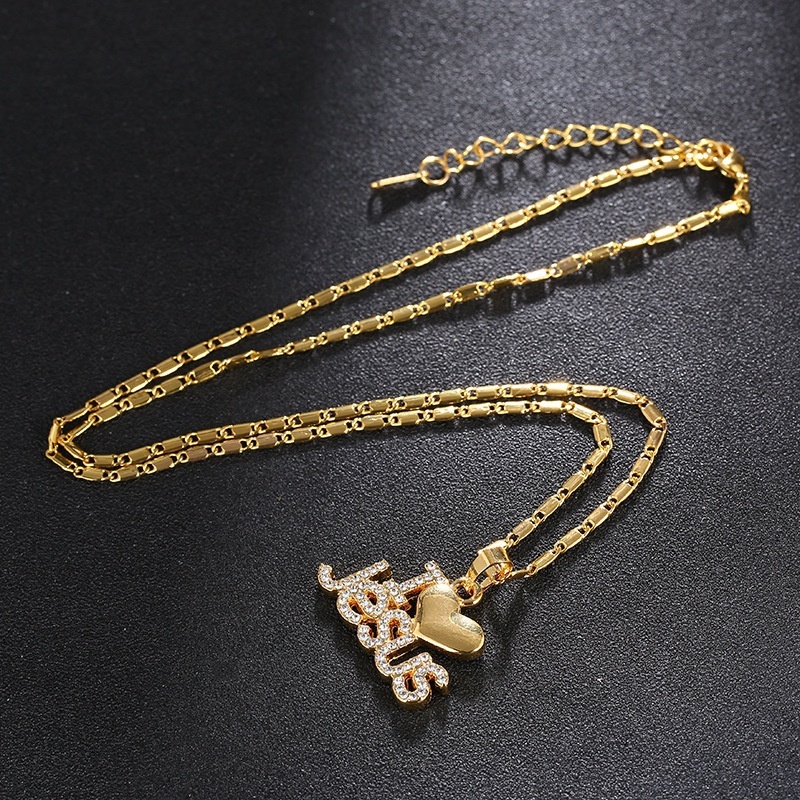 Colar Feminino Com Pingente Eu Amo Jesus Incrustada Com Pingente De Diamante