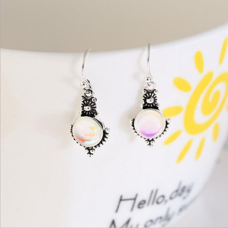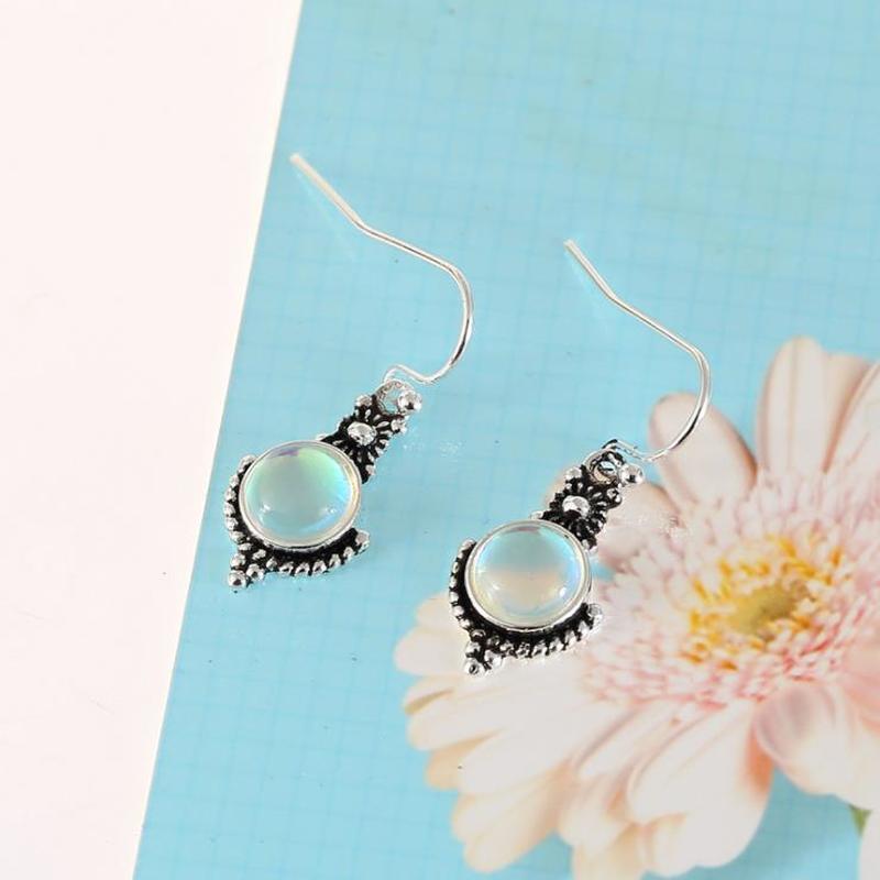 Brinco Feminino Vintage Com Pedra Da Lua Incrustada De Prata 925