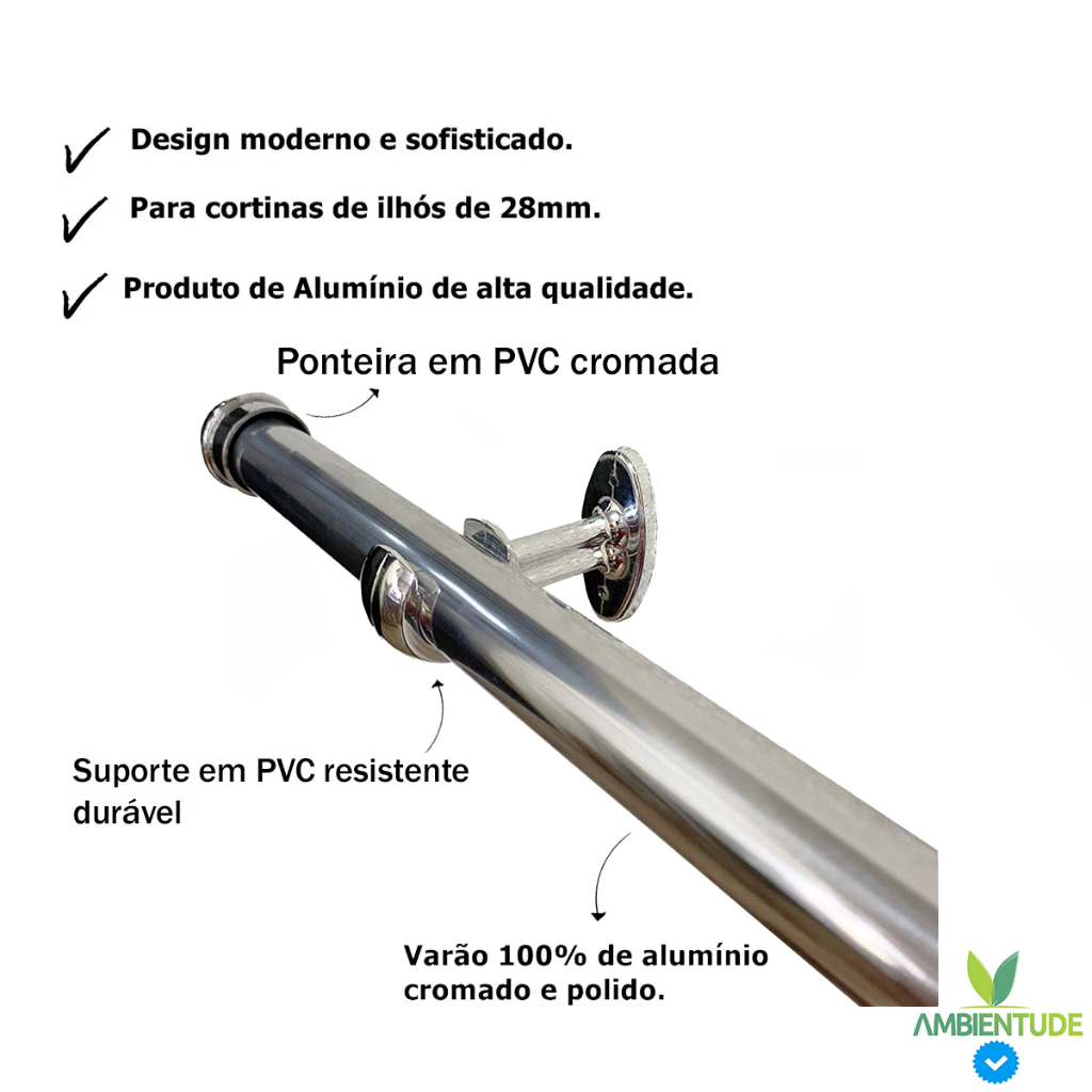 Varão De Cortina 28mm (grosso) Com 3 Metros Cromado Alumínio