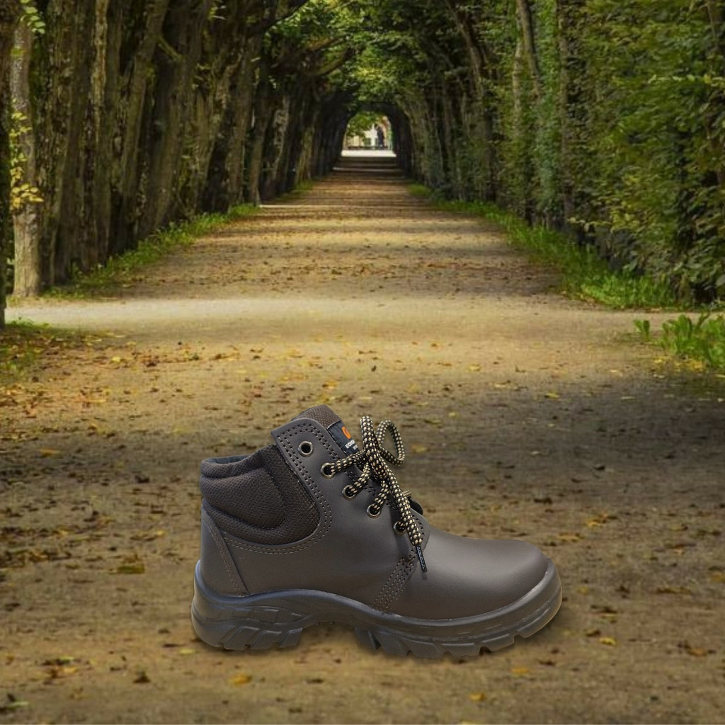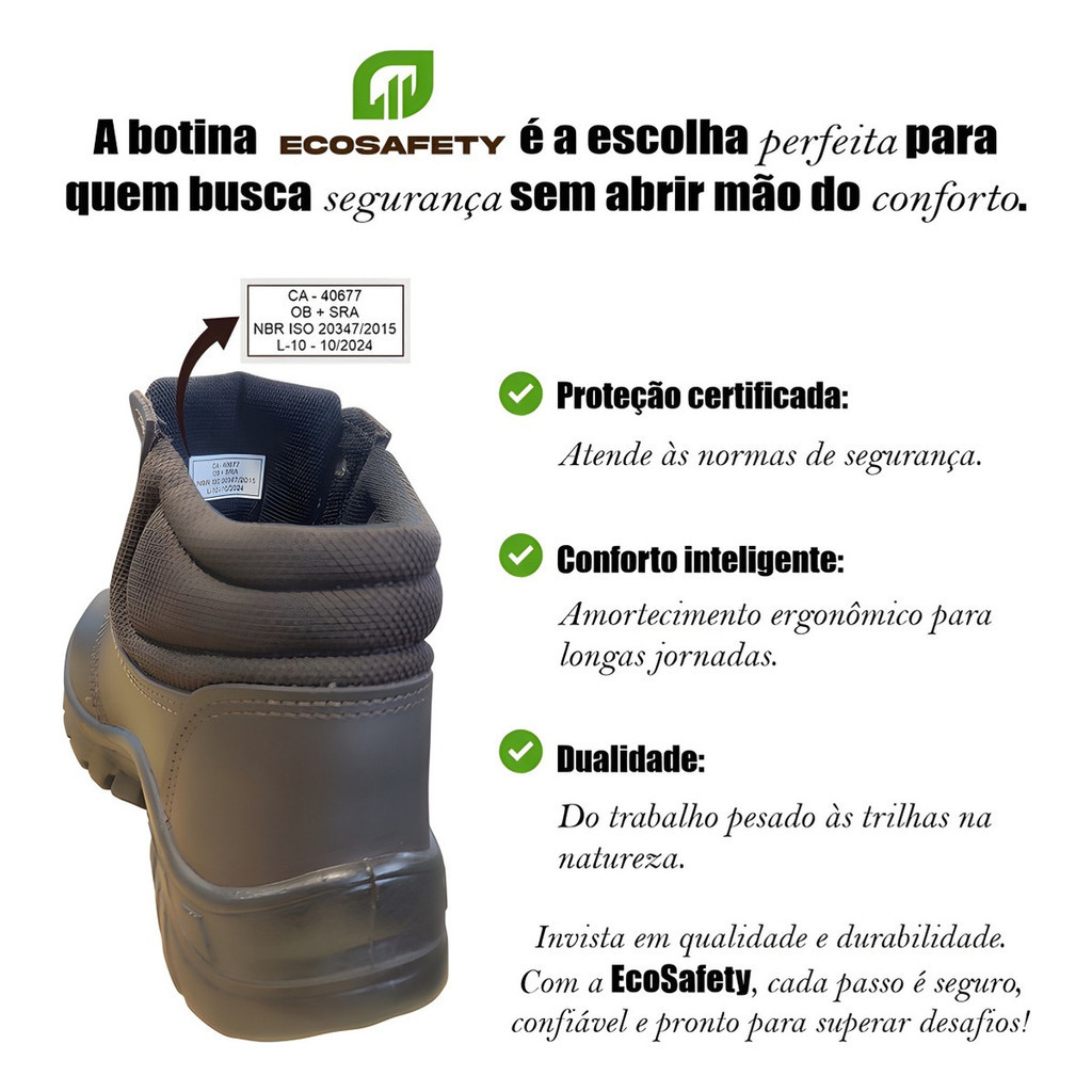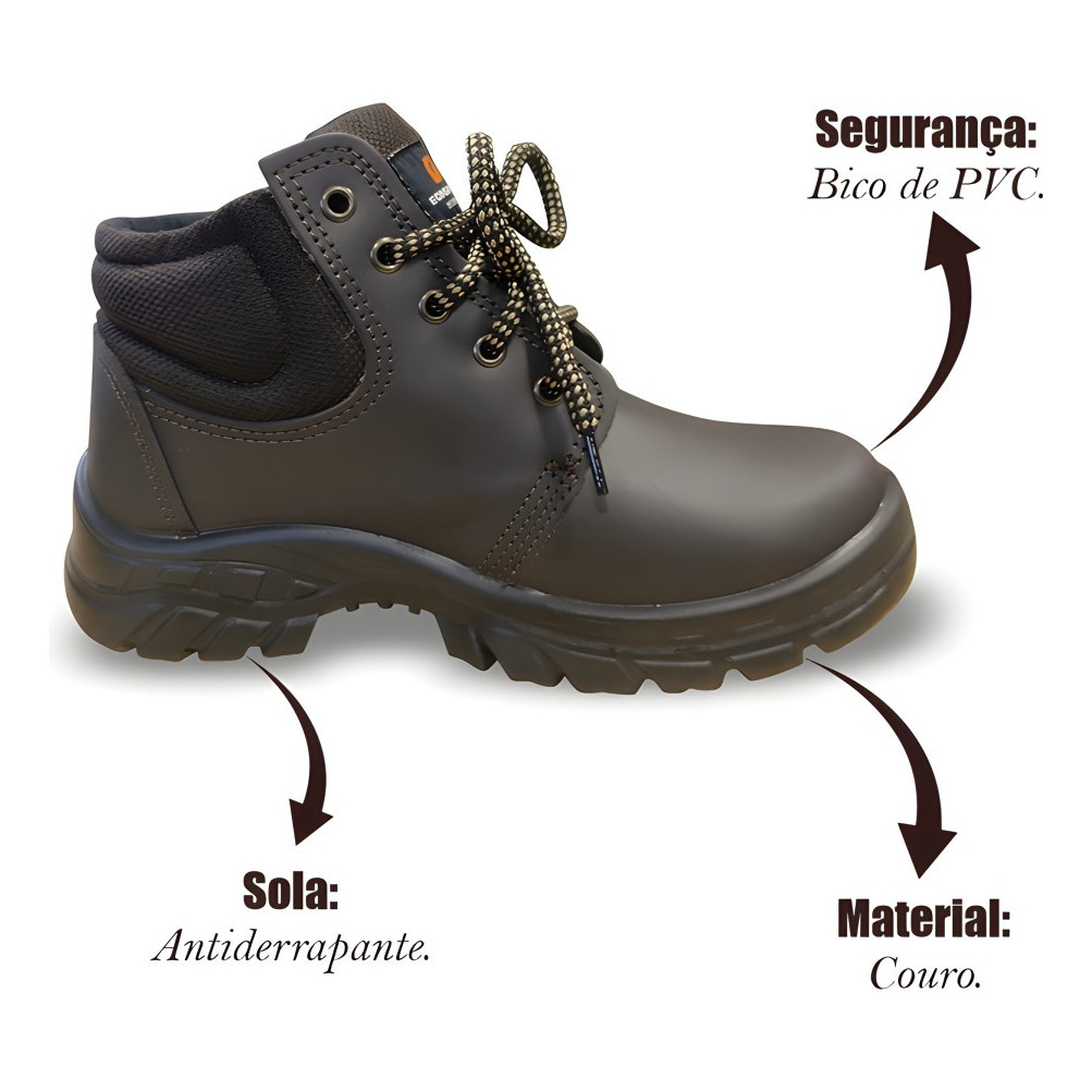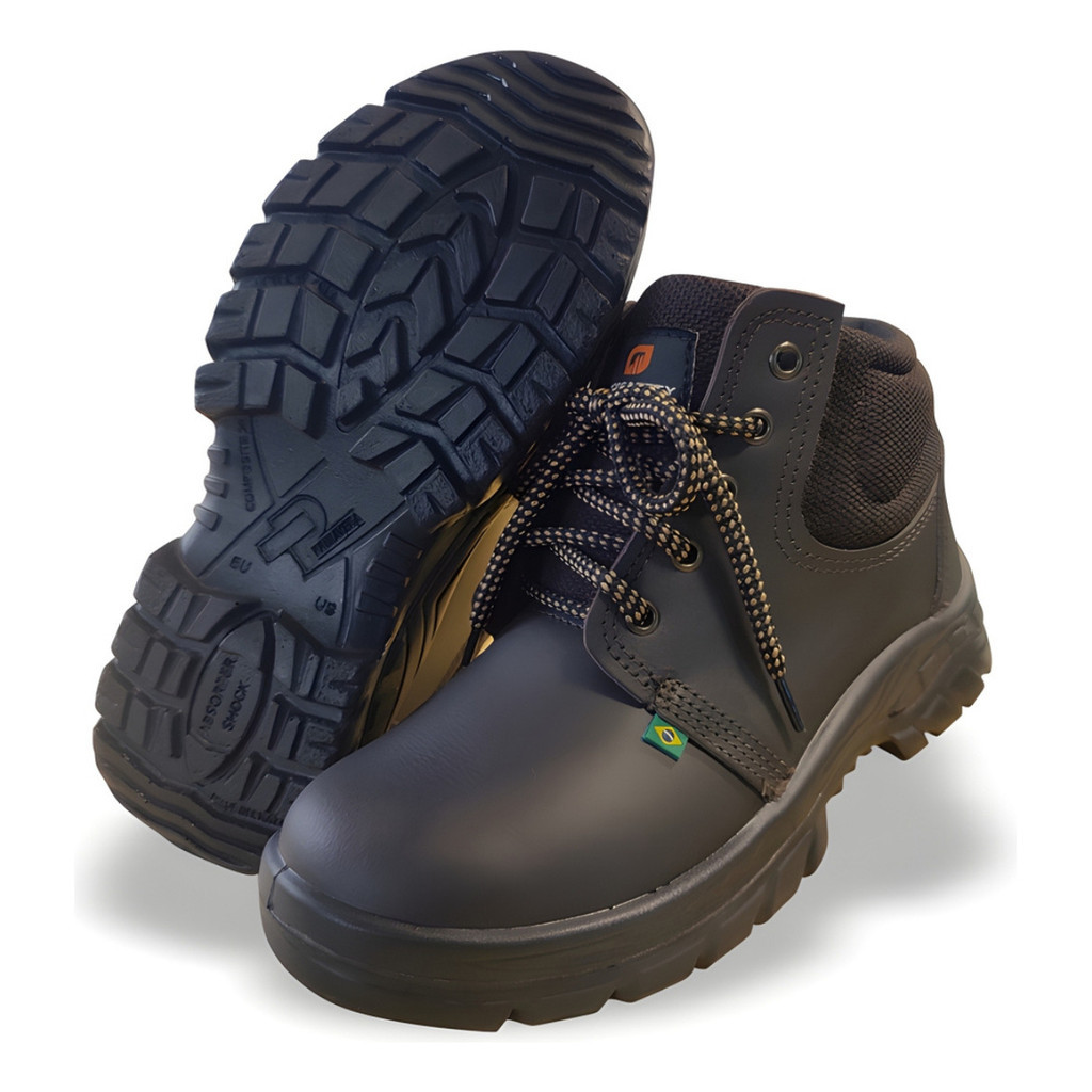 Botina Masculina Ecosafety Couro Café PS139 | EPI com CA | Bico Redondo | Uso Profissional
