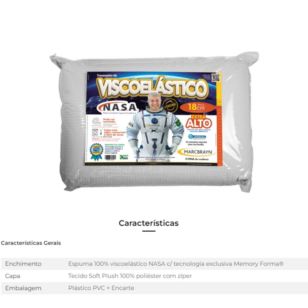 Travesseiro MarcBrayn Nasa Extra Alto 18cm - 101003