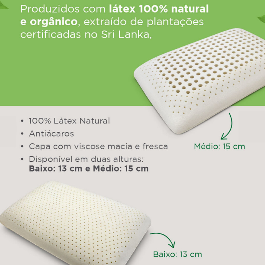 Travesseiro Vegan Látex Natural Theva Perfil Médio 15cm