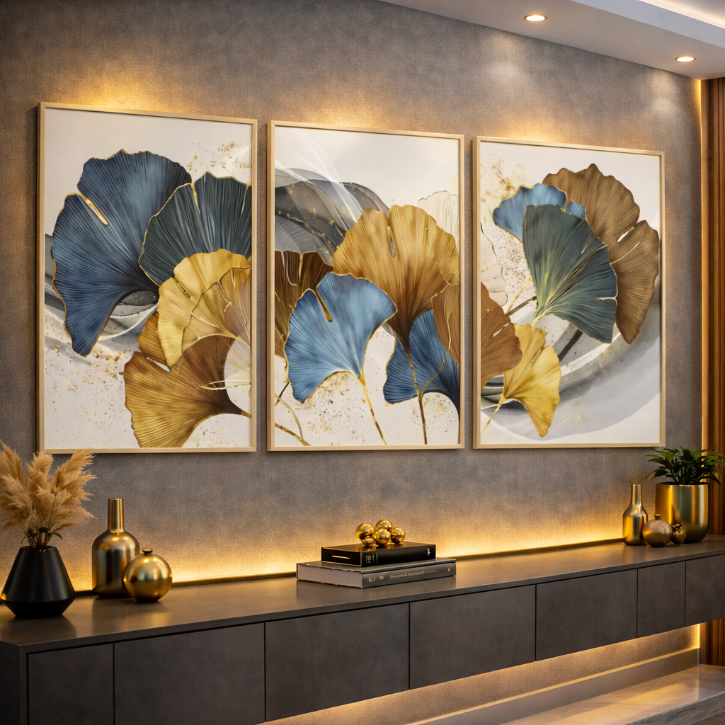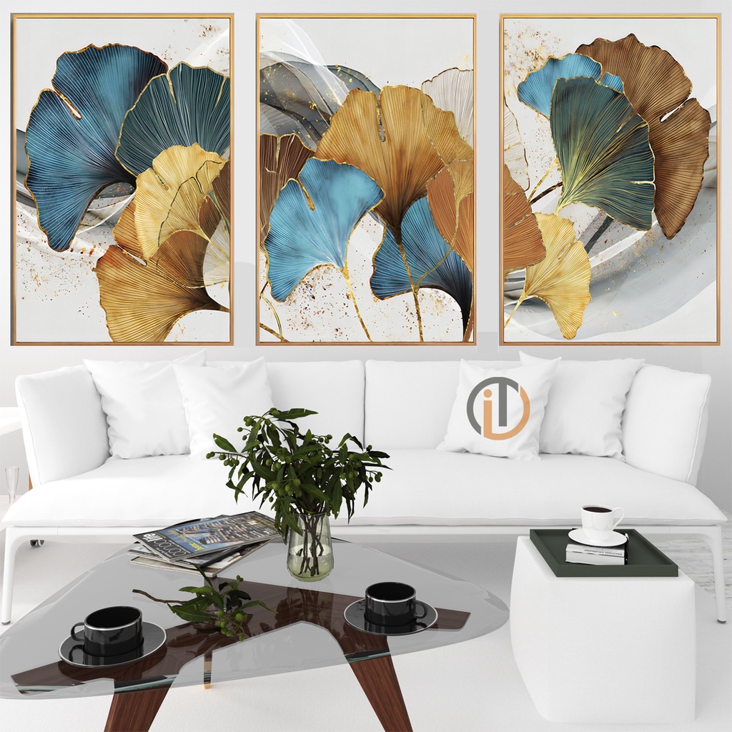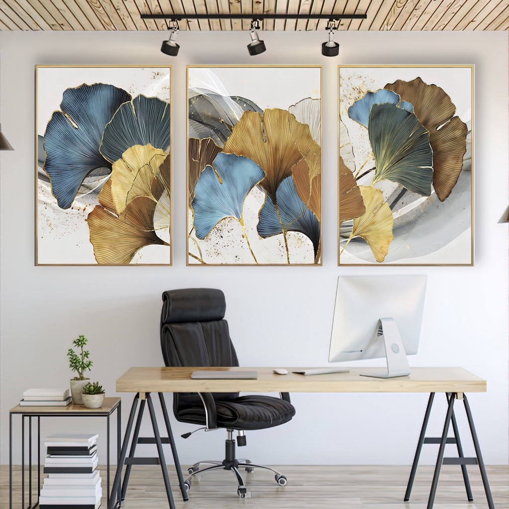 Kit 3 Peças Quadros Decorativos De Parede Mdf Flores Folhas Secas Abstrato Colorido Para Quarto Sala