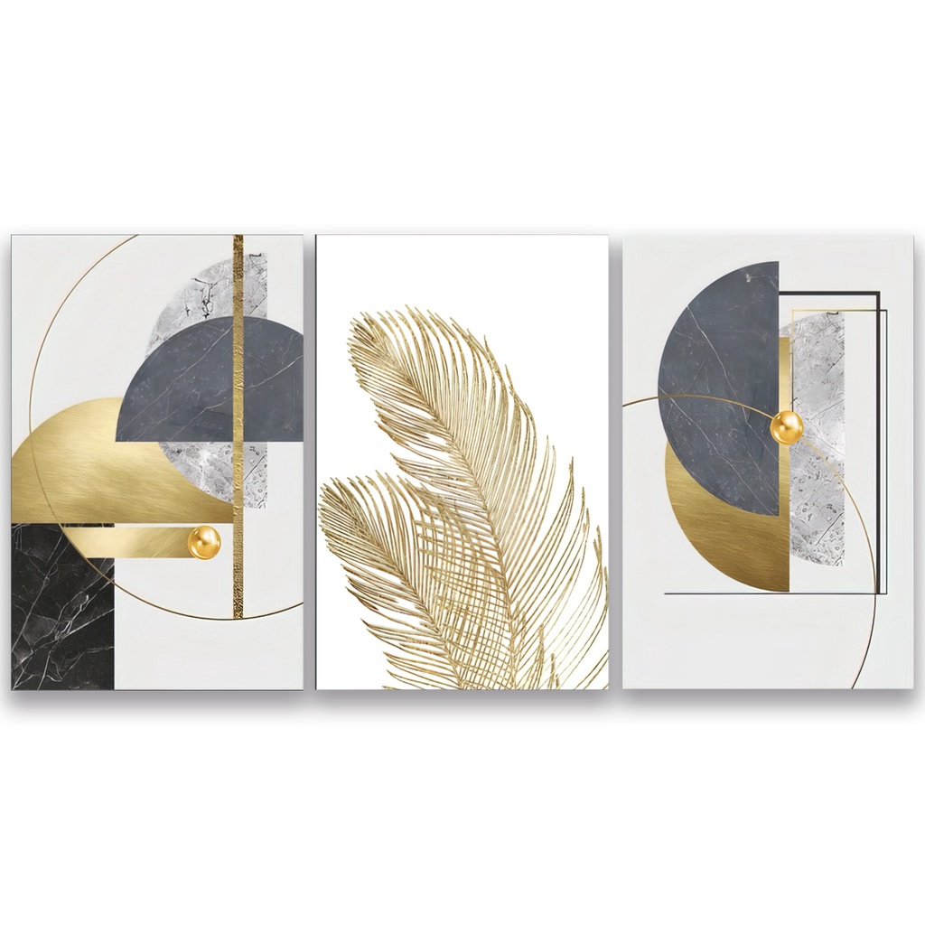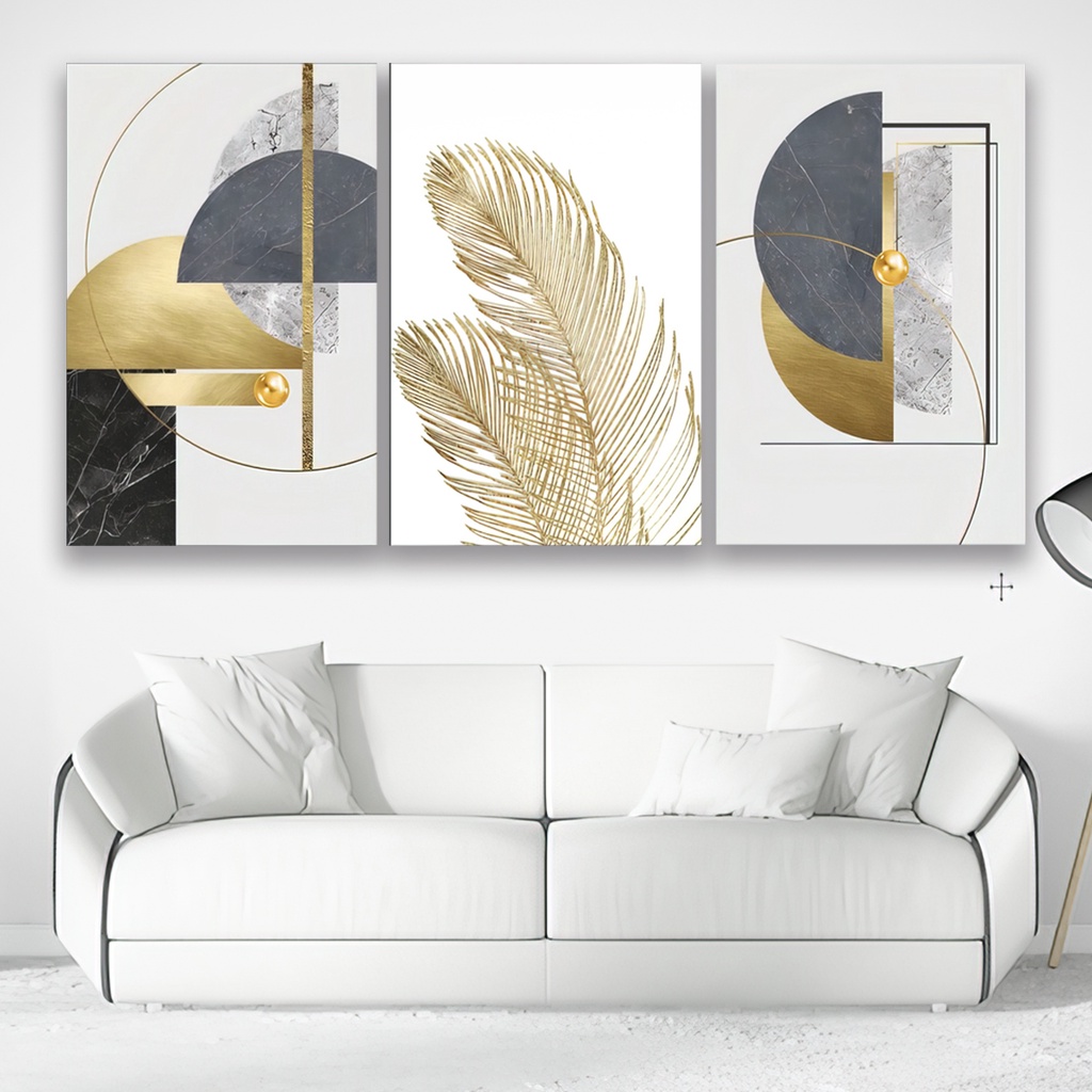 Kit Quadros Decorativos Mosaico Geométrico Folha Ouro Abstrato Conceitual Quarto Sala