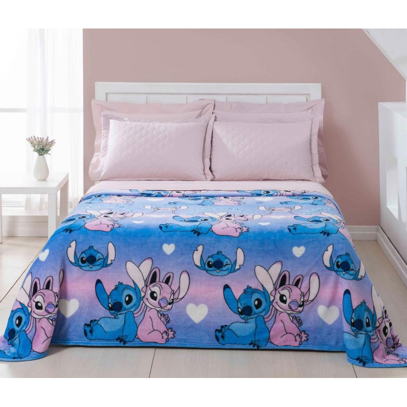 Manta Solteiro Casal e Queen Disney Stitch e Angel