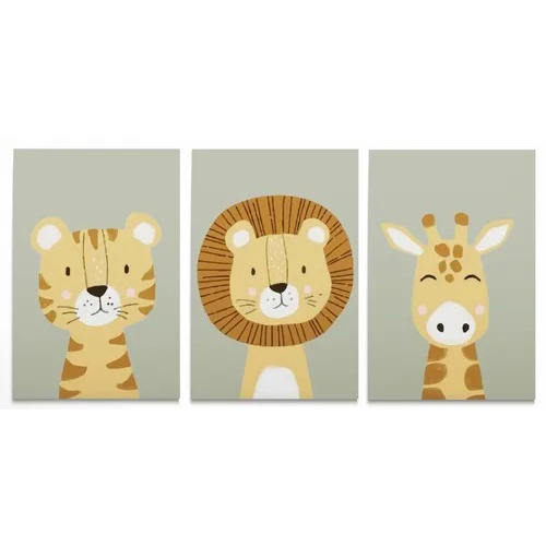 Kit Quadro Decorativo Personalizado Infantil Safari Animais Para Quarto De Criança 60x40