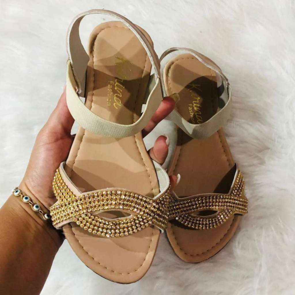 Sandália Feminina Rasteirinha Rasteira Feminina Confortável Brilho Calce Fácil Elástico Calcanhar Dia a Dia