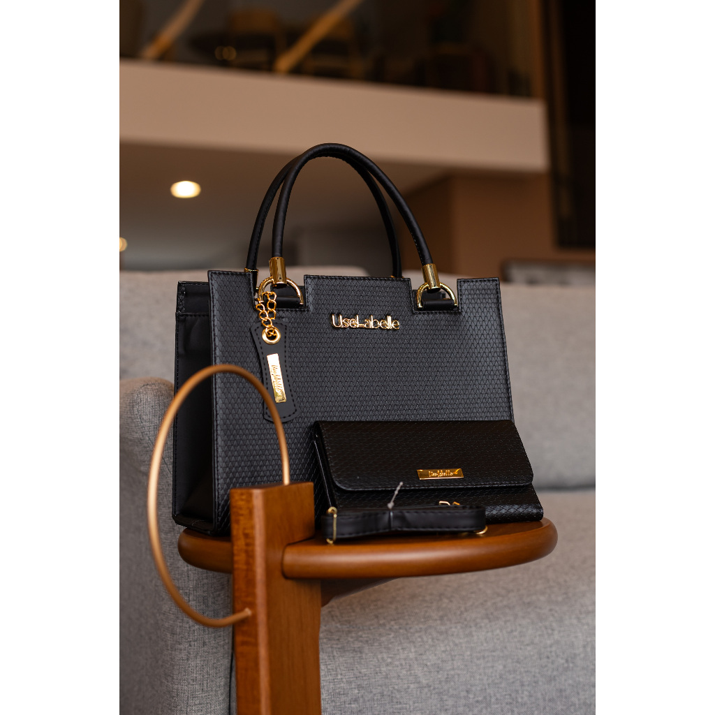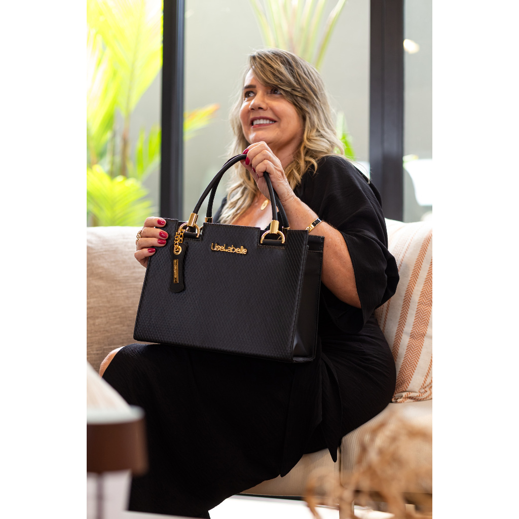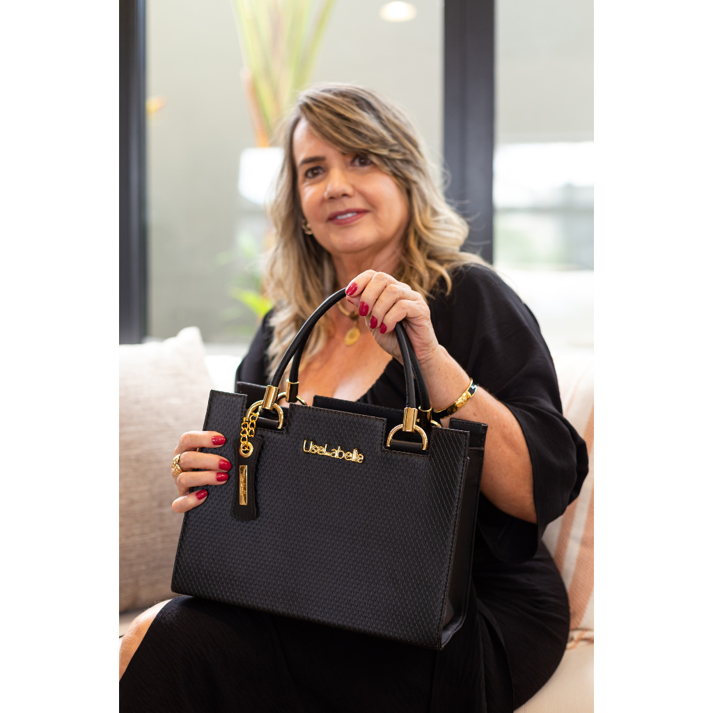 Bolsa Feminina Original Resistente em Couro Metal Dourado Forrada Cetim + Carteira Luxo + Alça