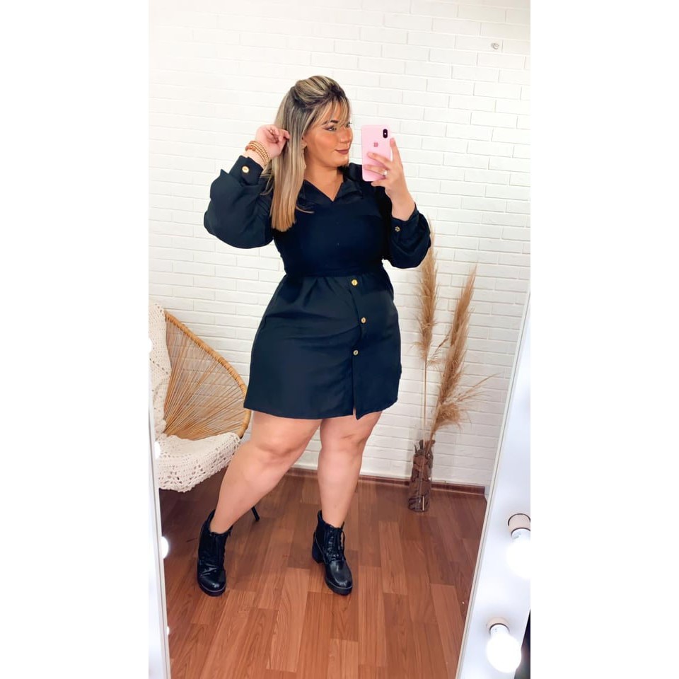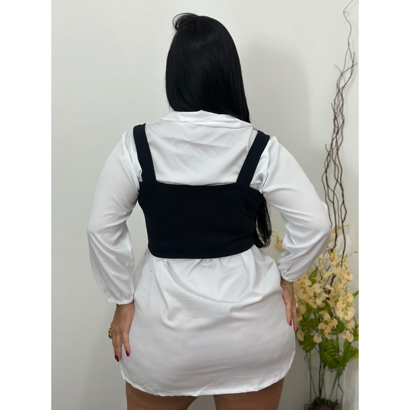Vestido Chemise e Cropped Manga Curta Feminino Plus Size 44 A 54