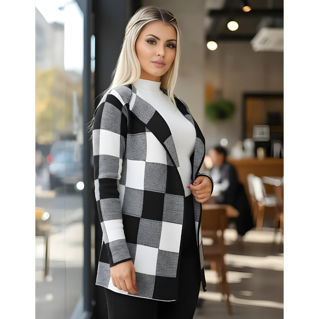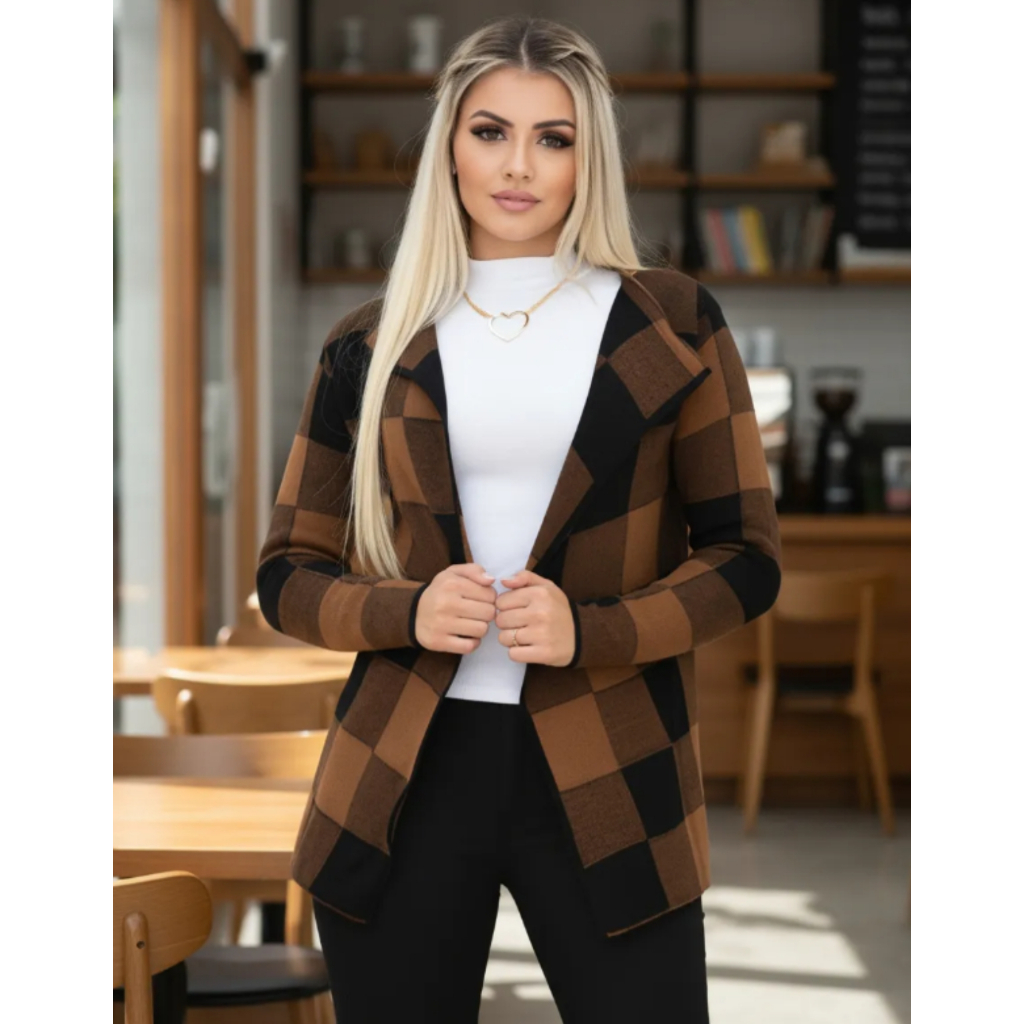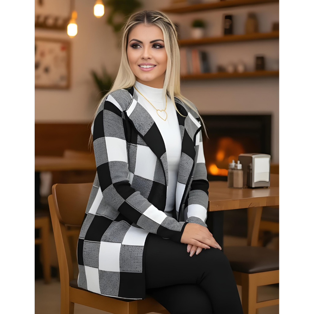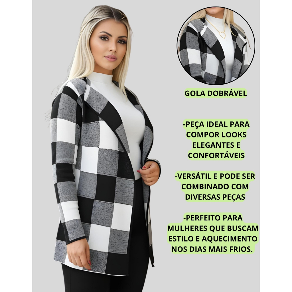 Cardigan Xadrez Sobretudo Lã Inverno Gola Chic Feminino Lindo
