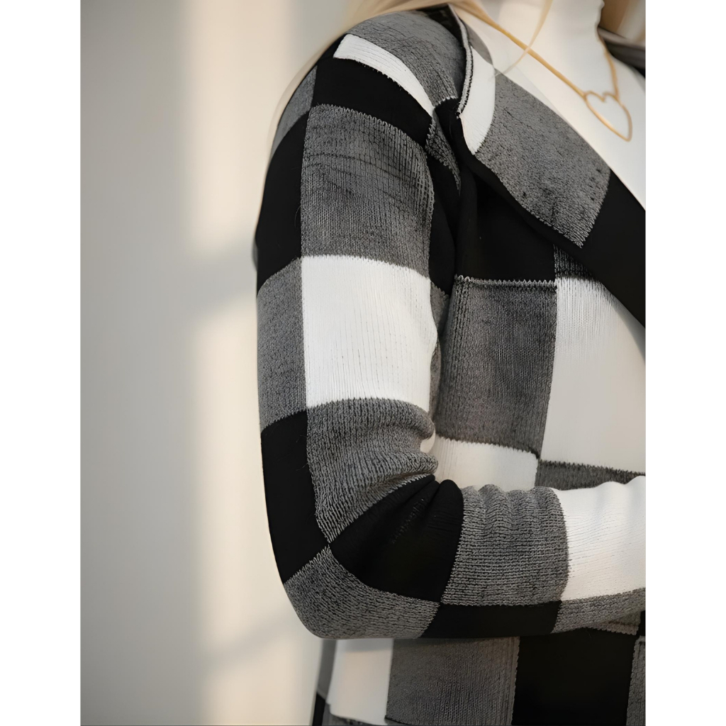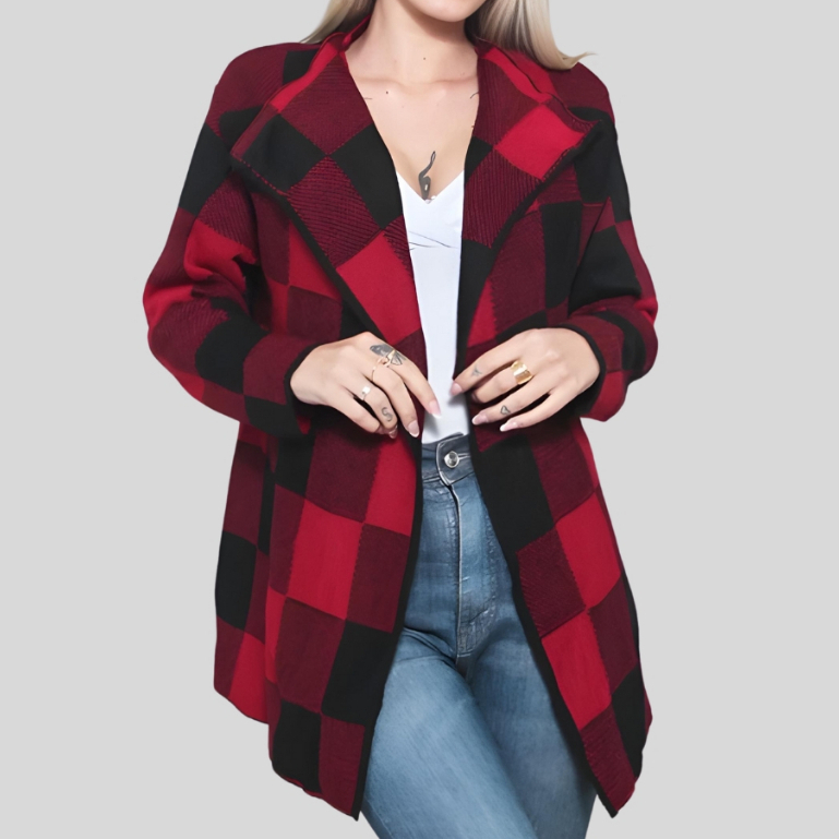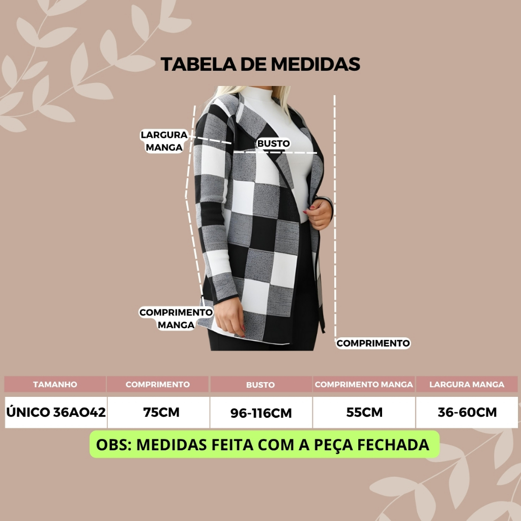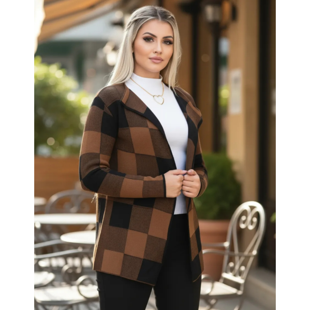 Cardigan Xadrez Sobretudo Lã Inverno Gola Chic Feminino Lindo