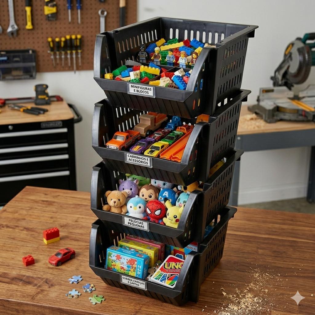 Caixa Plástica Expositora Empilhável Mini Cesto 4 Pçs