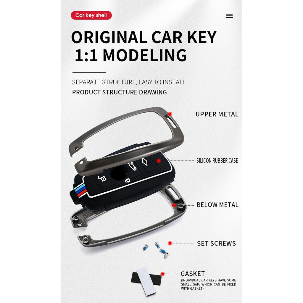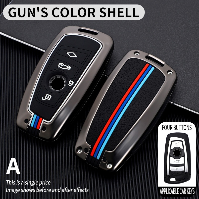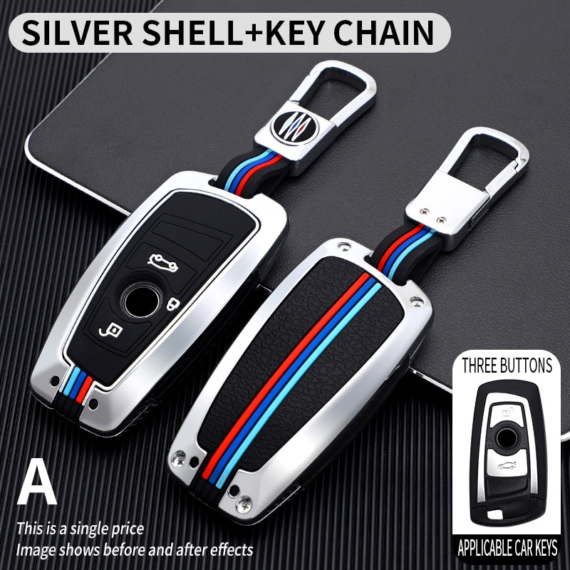 Liga Galvanizado Tampa Da Pele Do Caso Fob Chave Carro Inteligente Para BMW 3 4 5 Série 320i 530i 550i F20 F21 F30 F31 F25 F01 F02 Com keychain
