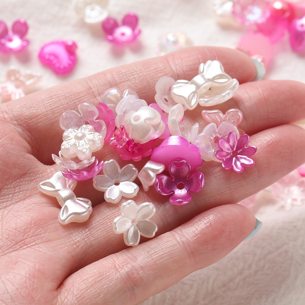 St.kunkka 20g Contas De Flores Acrílicas Mistas 5 ~ 15mm Remendo De Pérola ABS Para Fazer Joias DIY