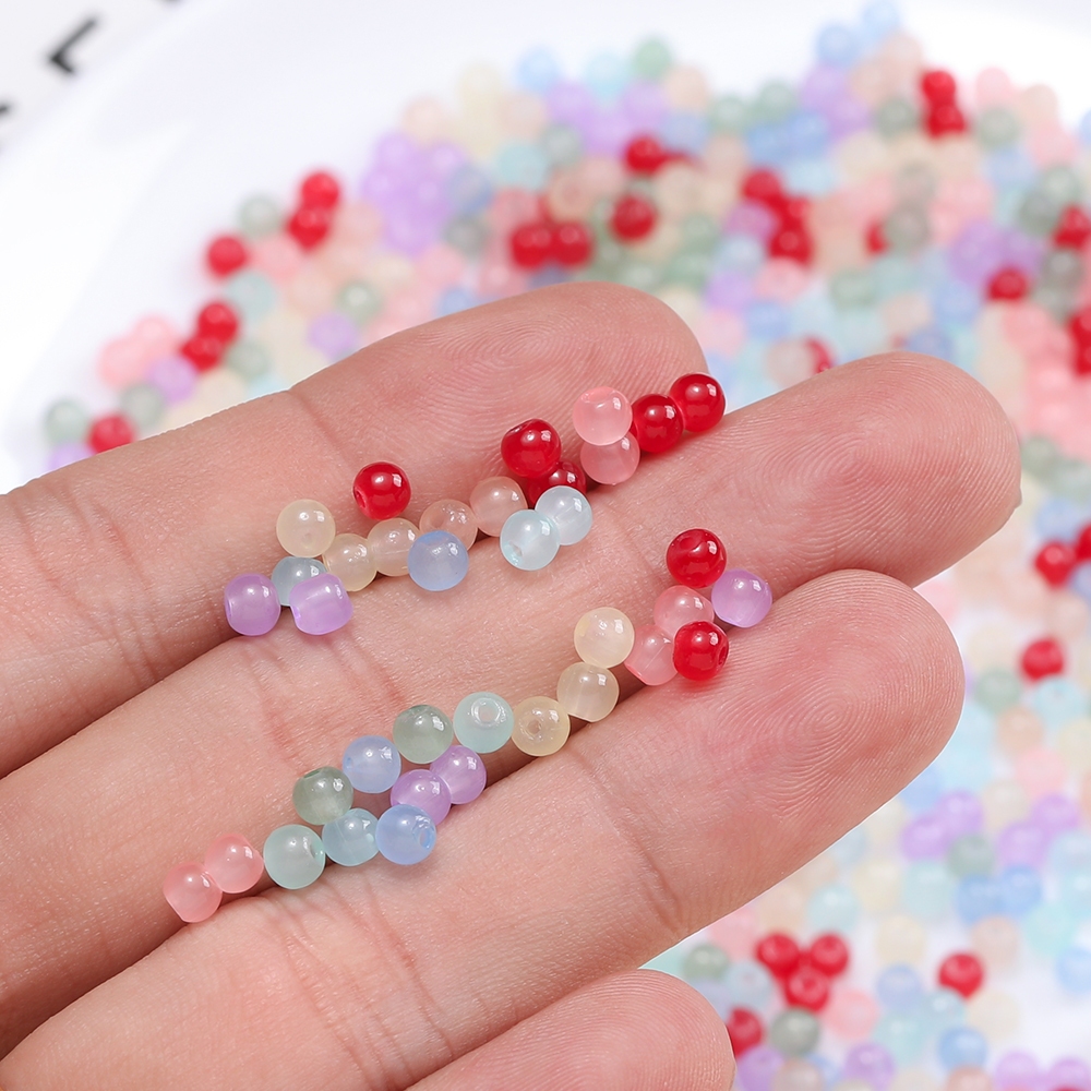 St.kunkka 50/100 Peças 3-4mm Imitação De Contas De Vidro De jade Para Colar De Pulseira DIY