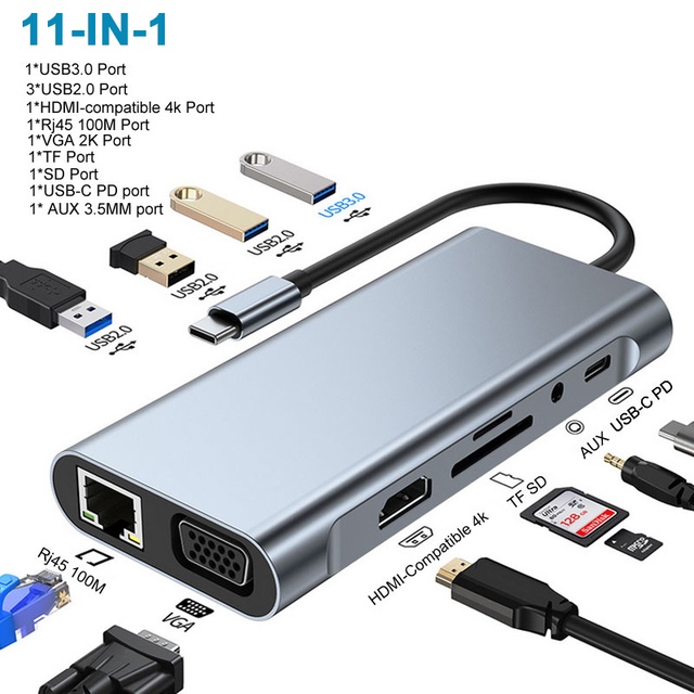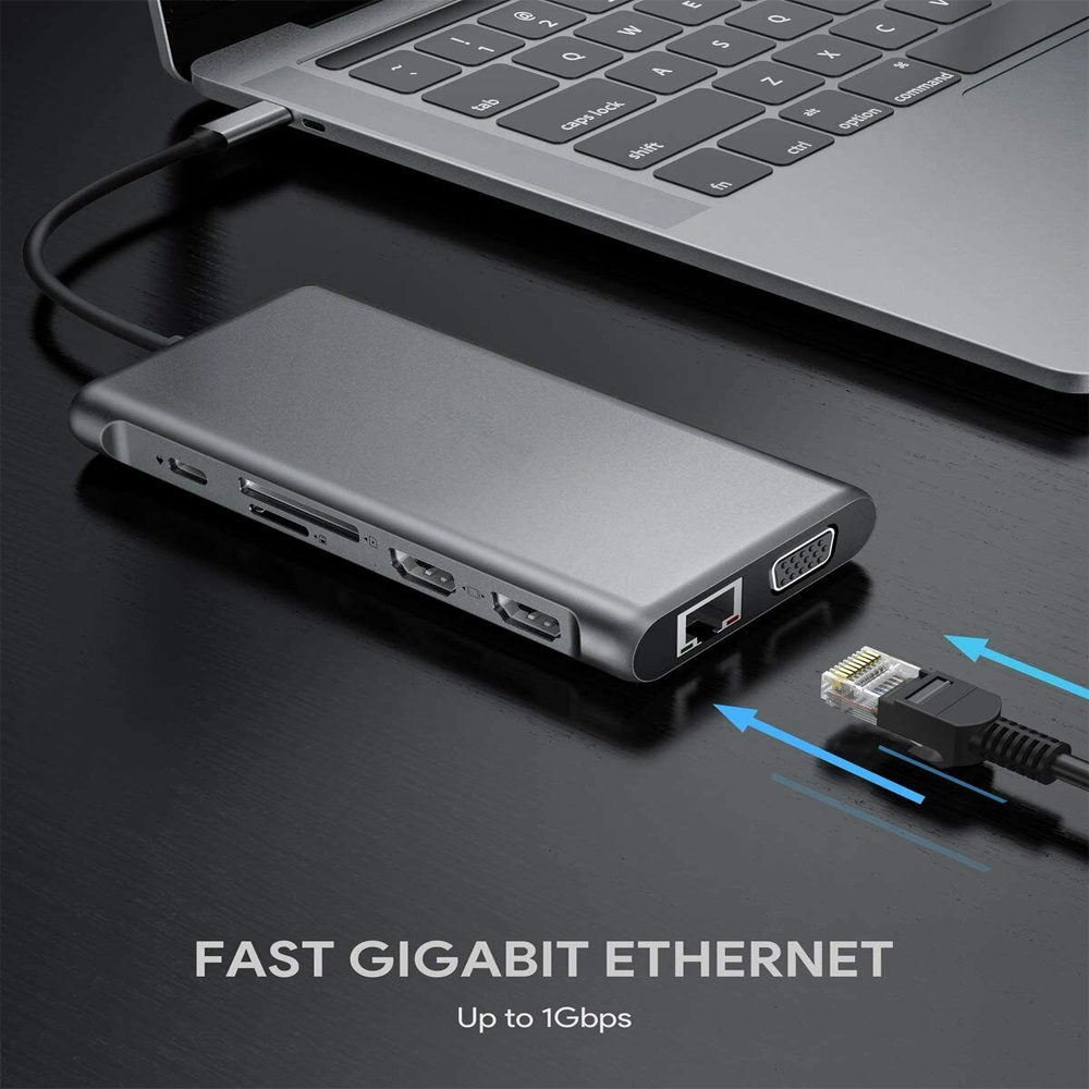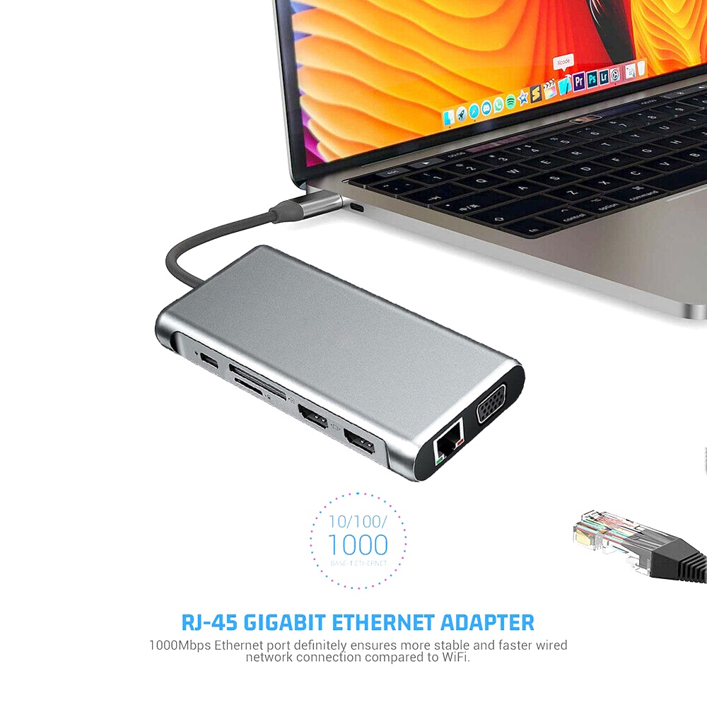 12 Em 1 USB Tipo C Hub Para 2 HDMI 4K VGA Adaptador RJ45 Lan Ethernet SD TF PD-3.0 3.5mm Áudio/Mic MacBook Pro OTG