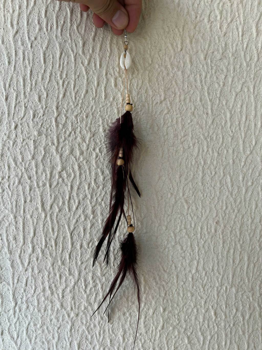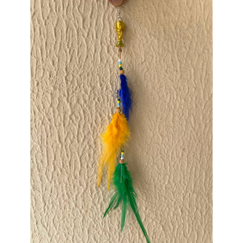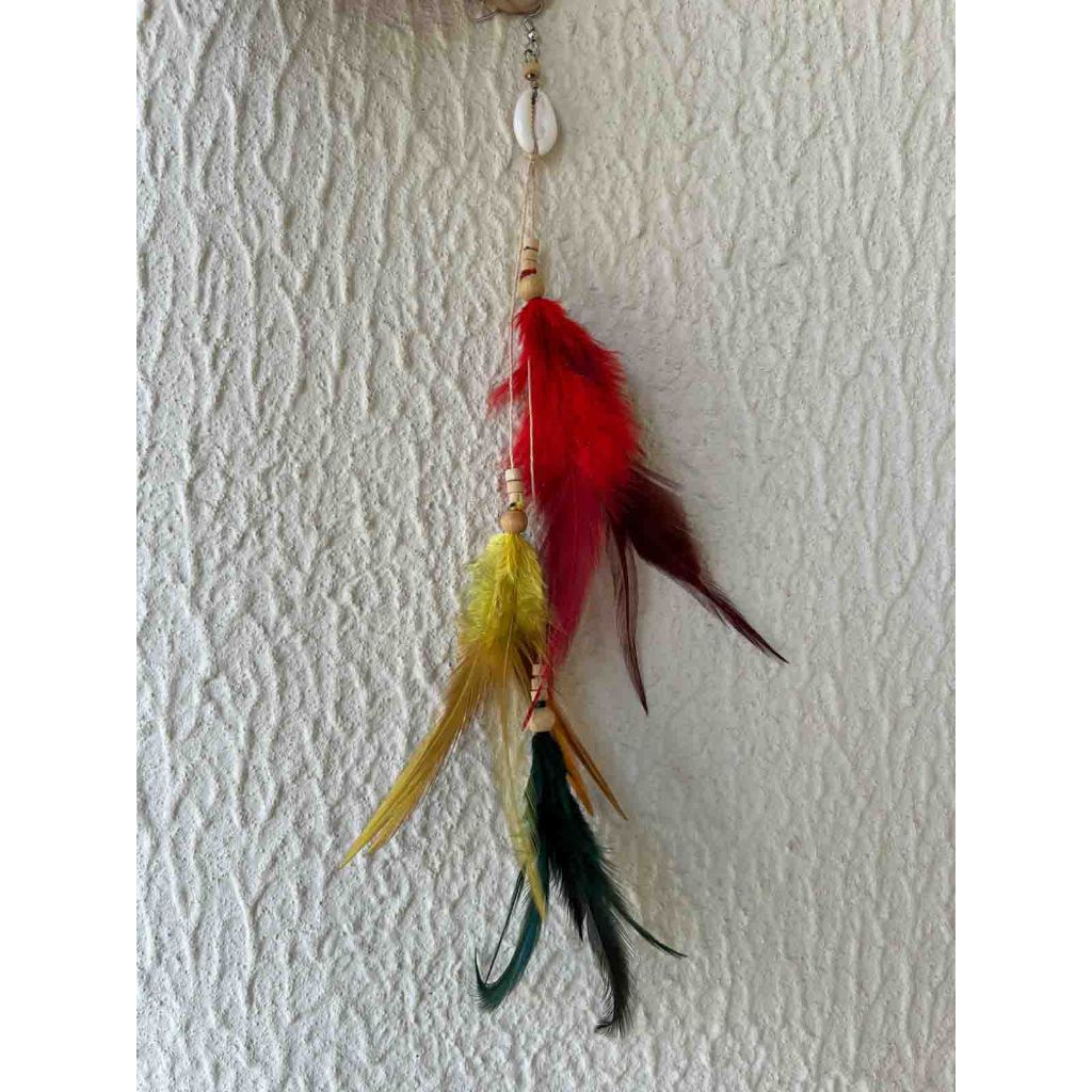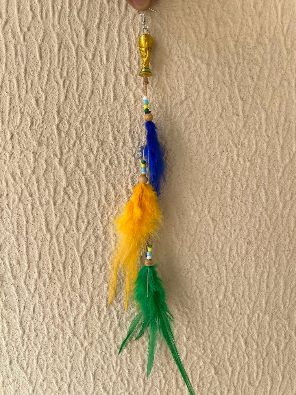 Brinco Longo Artesanal de Concha Búzios com Penas Coloridas – Boho, Hippie e Festival