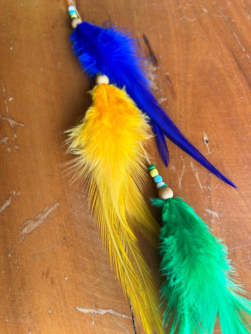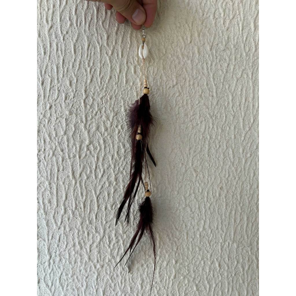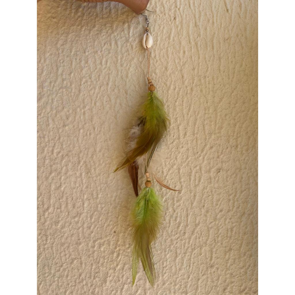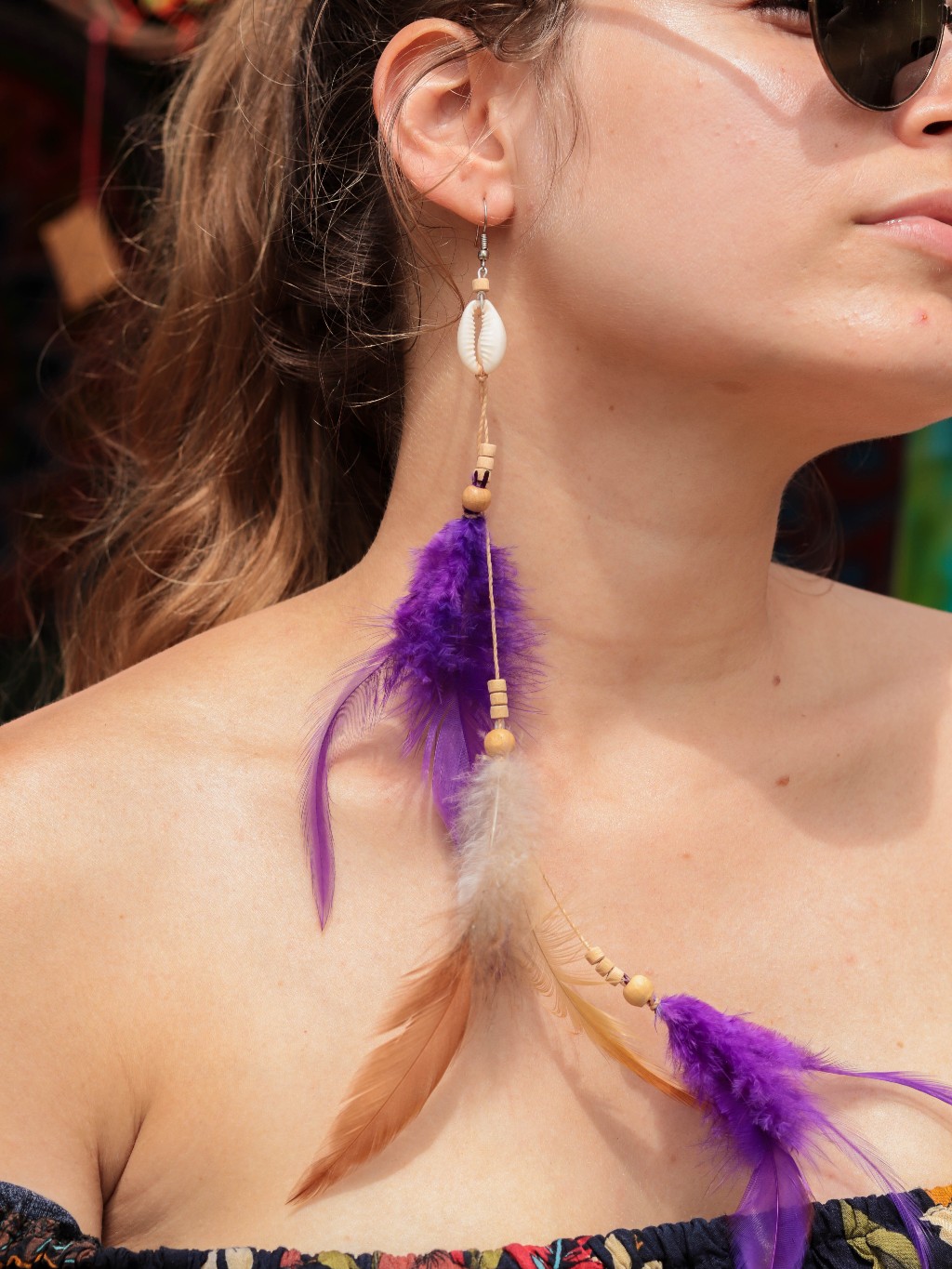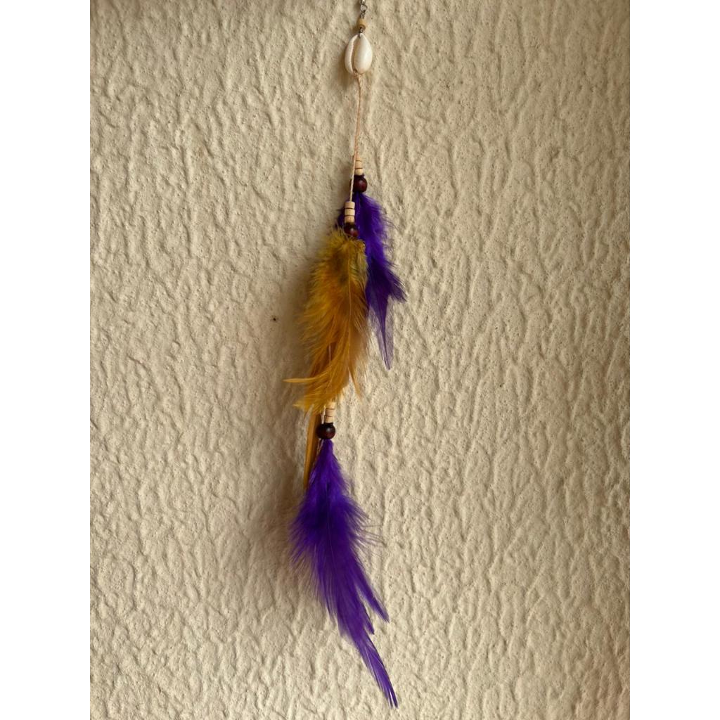 Brinco Longo Artesanal de Concha Búzios com Penas Coloridas – Boho, Hippie e Festival