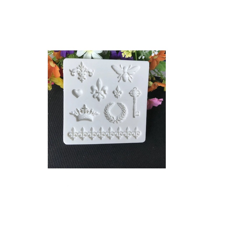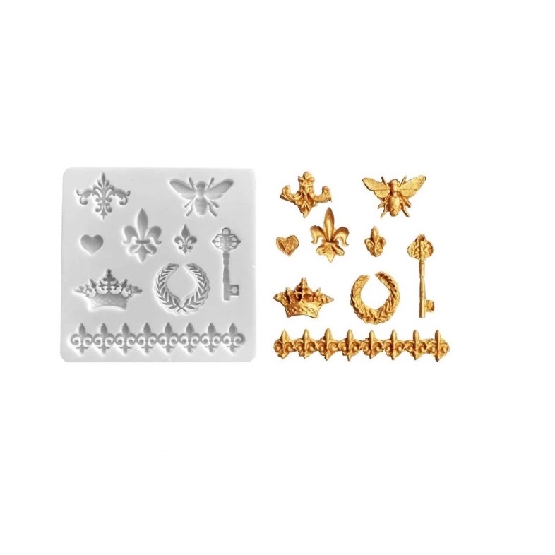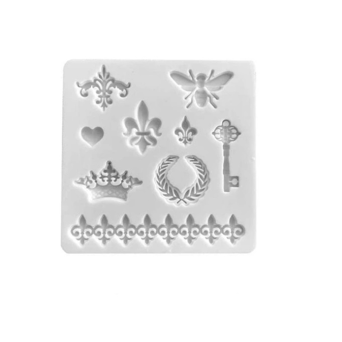Molde de Silicone Mini Arabescos - Chave, Flor de Lis, Abelha, Coroa para Artesanato e Confeitaria