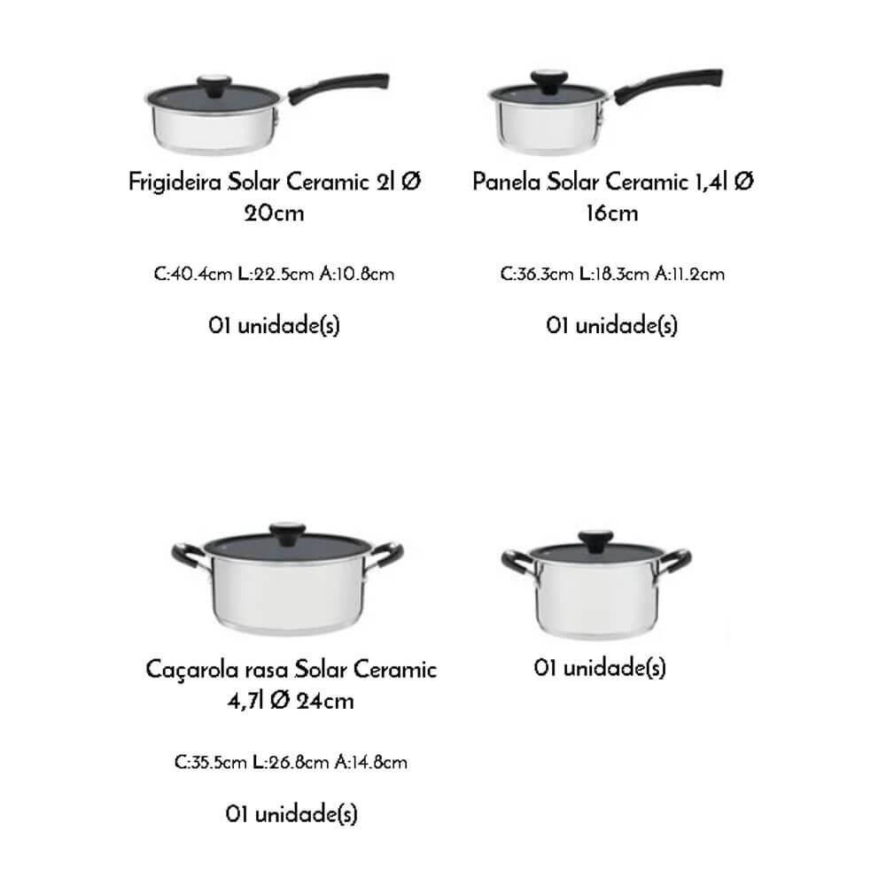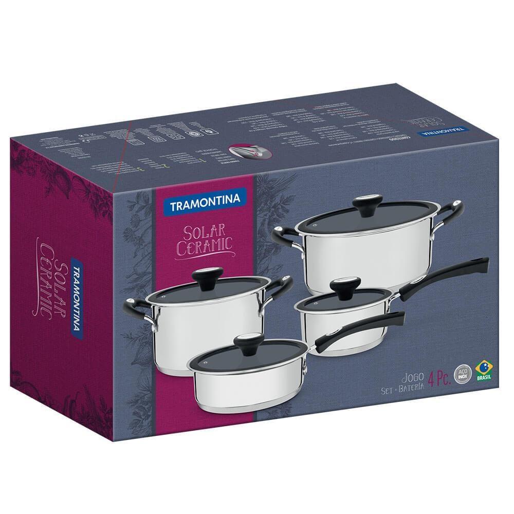 Jogo de Panelas Tramontina Ceramic 4 Peças Aço Inox Fundo Triplo com Revest. Interno 65120026