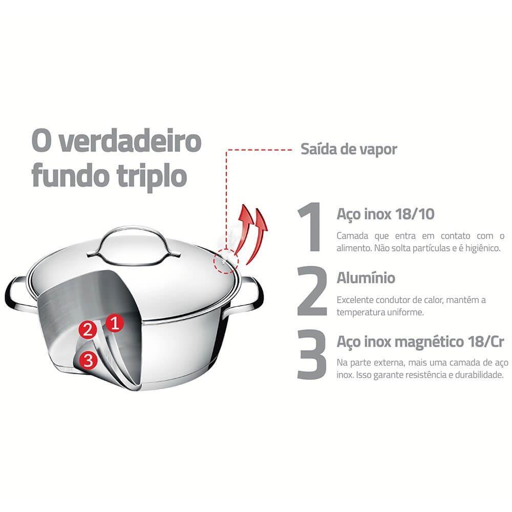 Caçarola Rasa Tramontina Allegra em Aço Inox com Fundo Triplo 22 cm 3,3 L 62653221